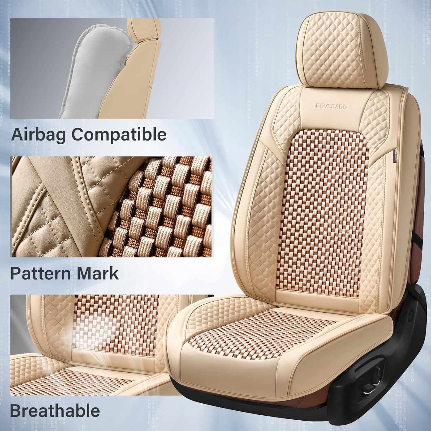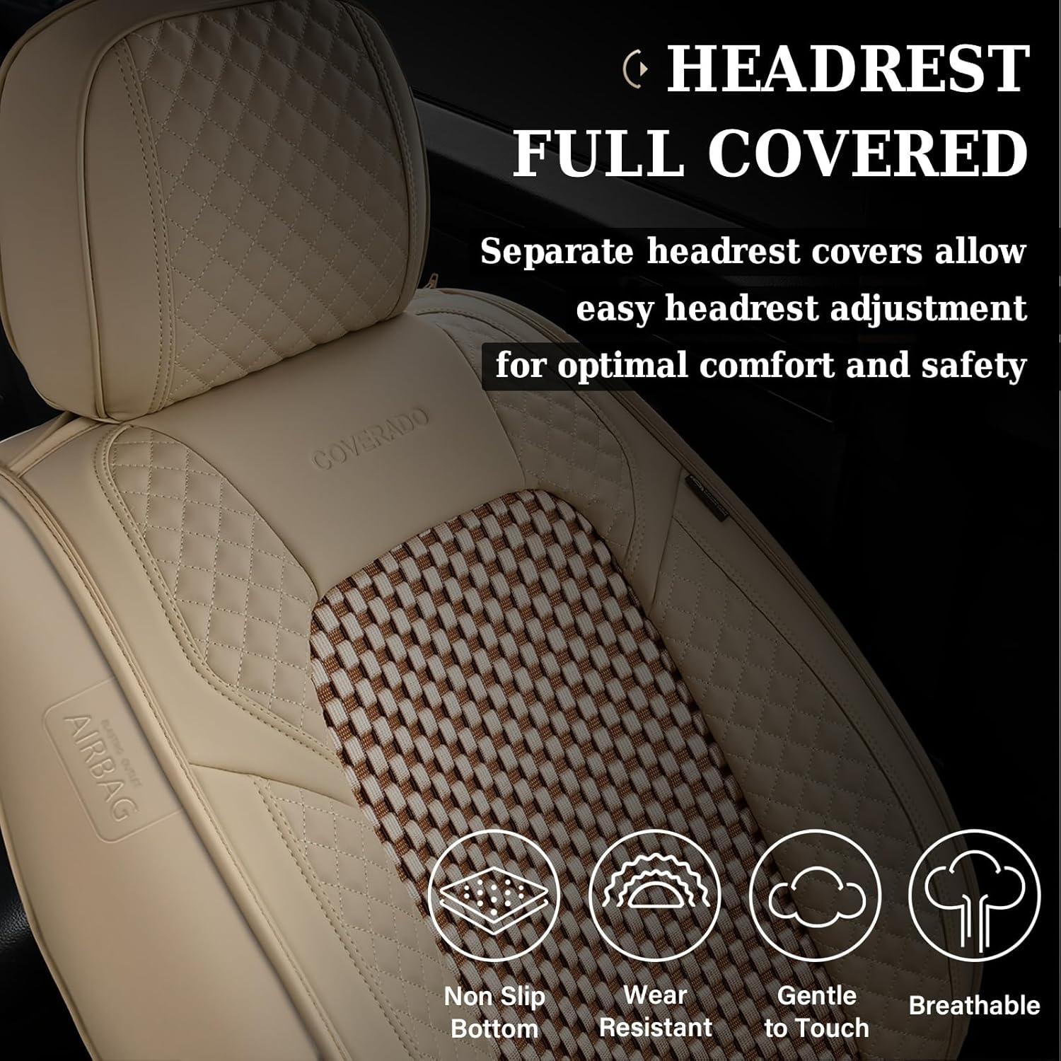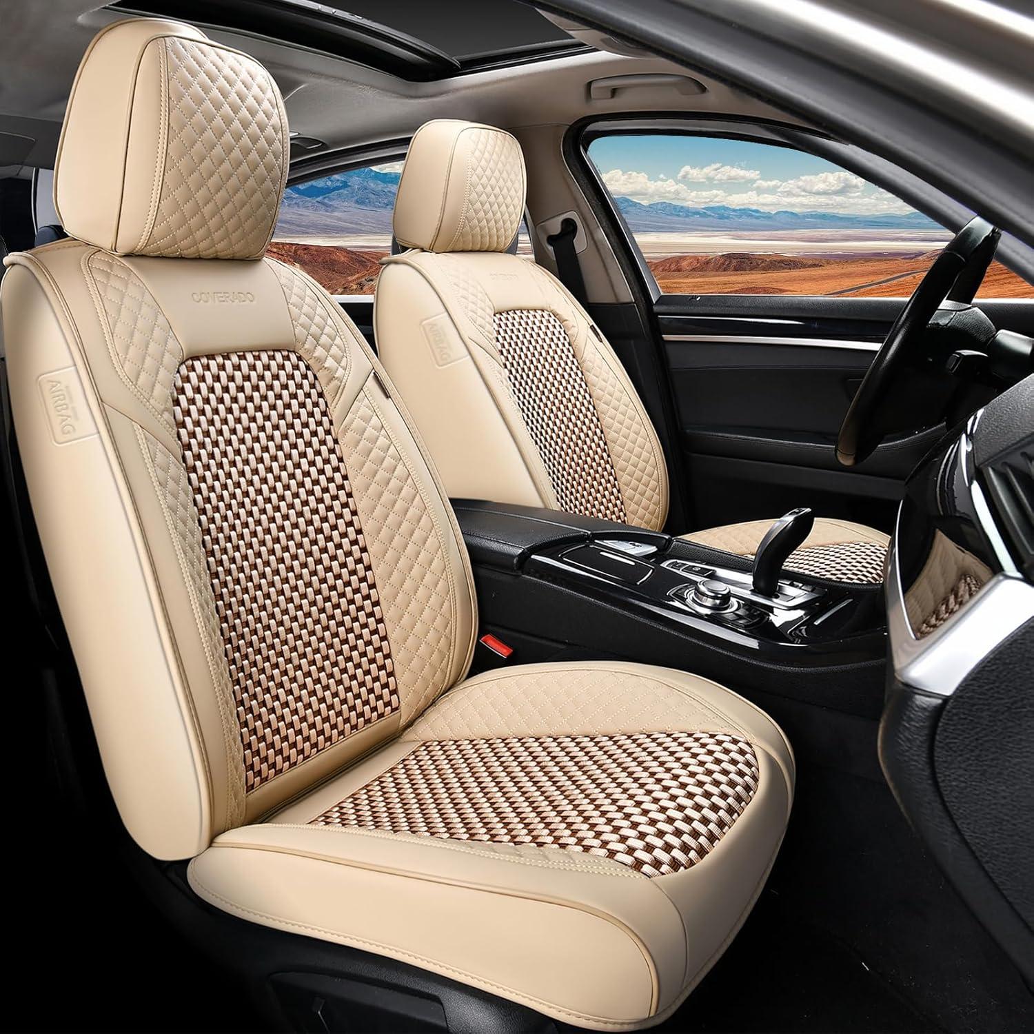 Coverado Leather Front Seat Covers, 2-Pack Universal Waterproof Breathable Leather Woven Leatherette Seat Cushions, Auto Car Seats Protectors, Fit for Most Vehicles-Blackpure(C-Woven/Beige)