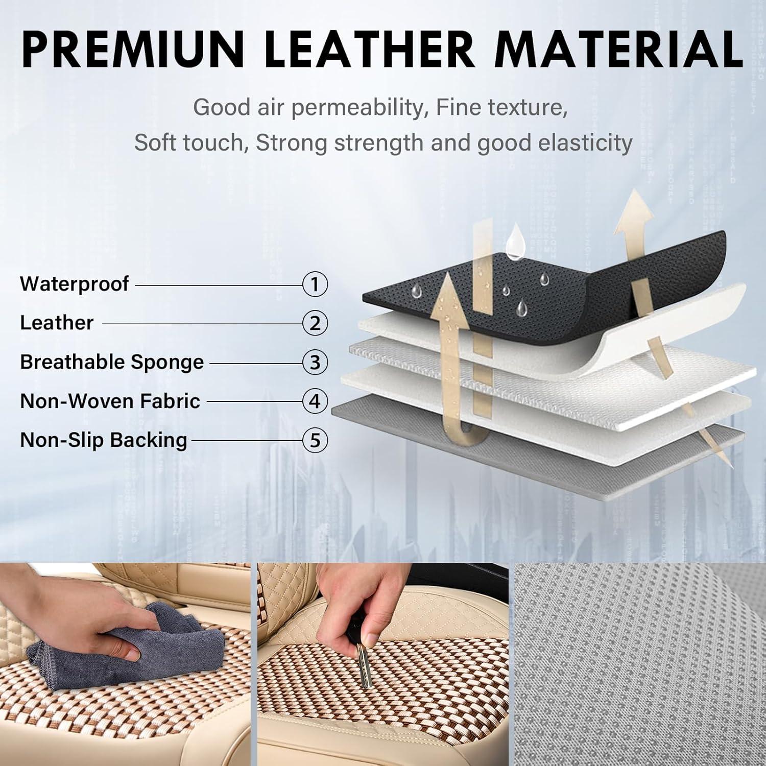 Premium Materials: Super Breathable Series cubre asientos para autos are constructed with durable faux leather and special woven fabric center sections. Soft padded protection, non-slip design and easy to clean. You can maintain them easily by wiping them with a wet towel