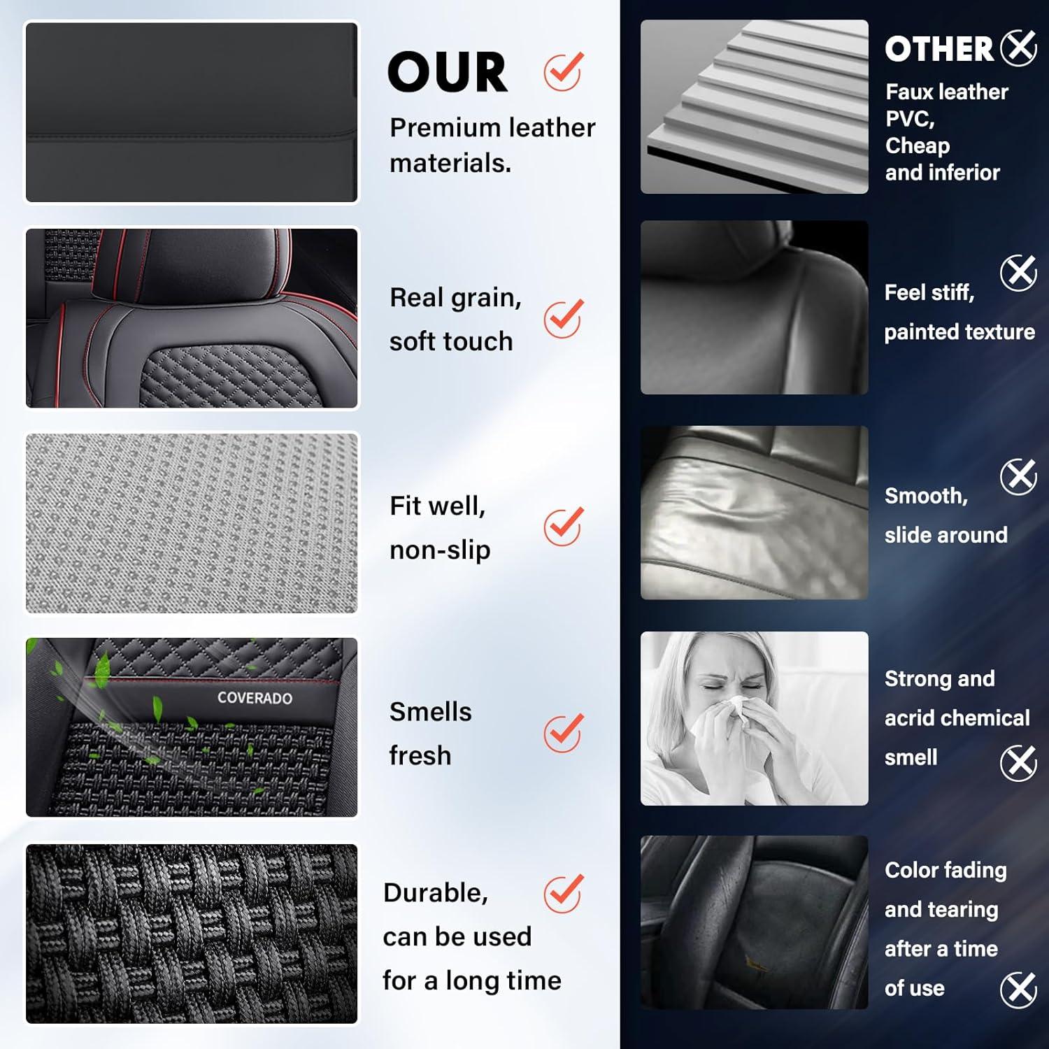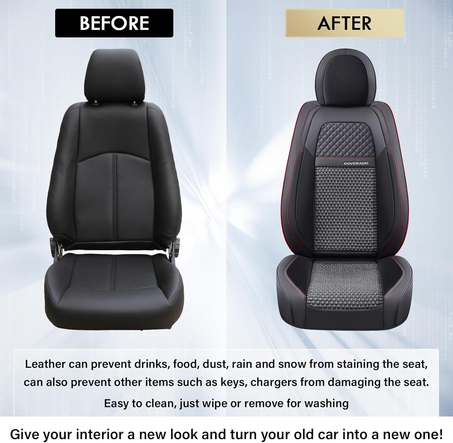 Be the first to review “Coverado Leather Front Seat Covers, 2-Pack Universal Waterproof Breathable Leather Woven Leatherette Seat Cushions, Auto Car Seats Protectors, Fit for Most Vehicles-Blackpure(Red Line)”