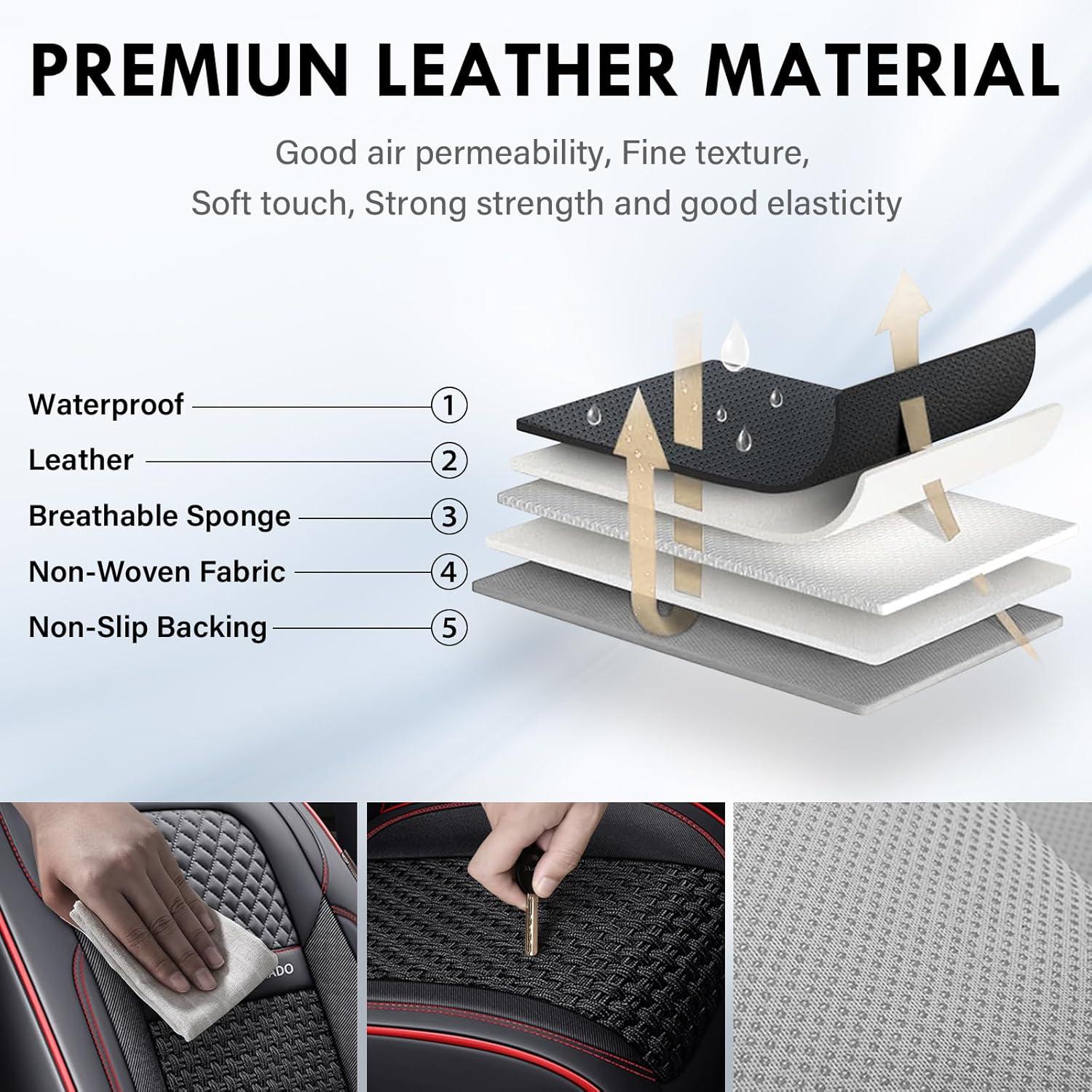 Premium Materials: Super Breathable Series cubre asientos para autos are constructed with durable faux leather and special woven fabric center sections. Soft padded protection, non-slip design and easy to clean. You can maintain them easily by wiping them with a wet towel