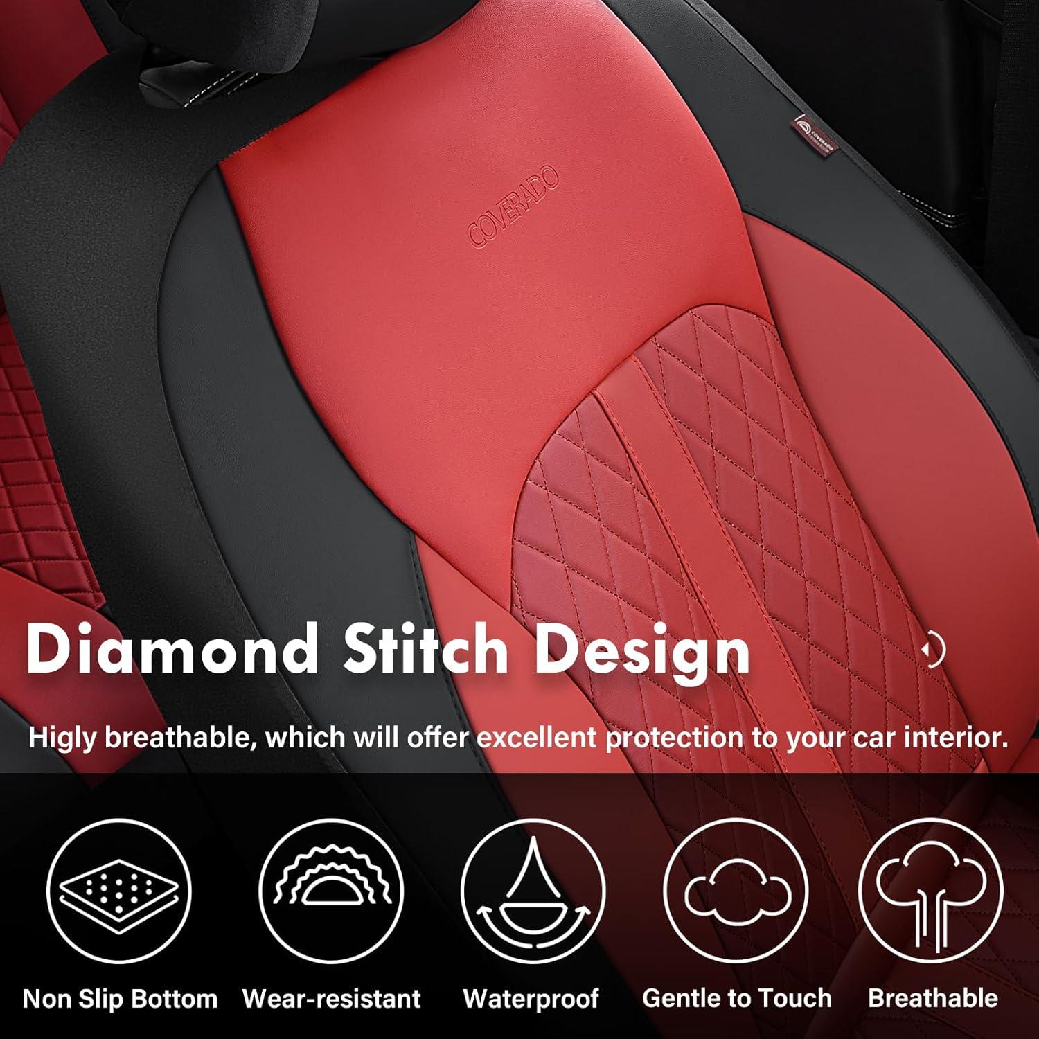Coverado Leather Seat Covers Full Set, Black and Beige Seat Covers for SUV, Pickup Truck, Sedan, Automotive Vehicle Interior, Waterproof and Durable All Weather Protector(Black&Red)