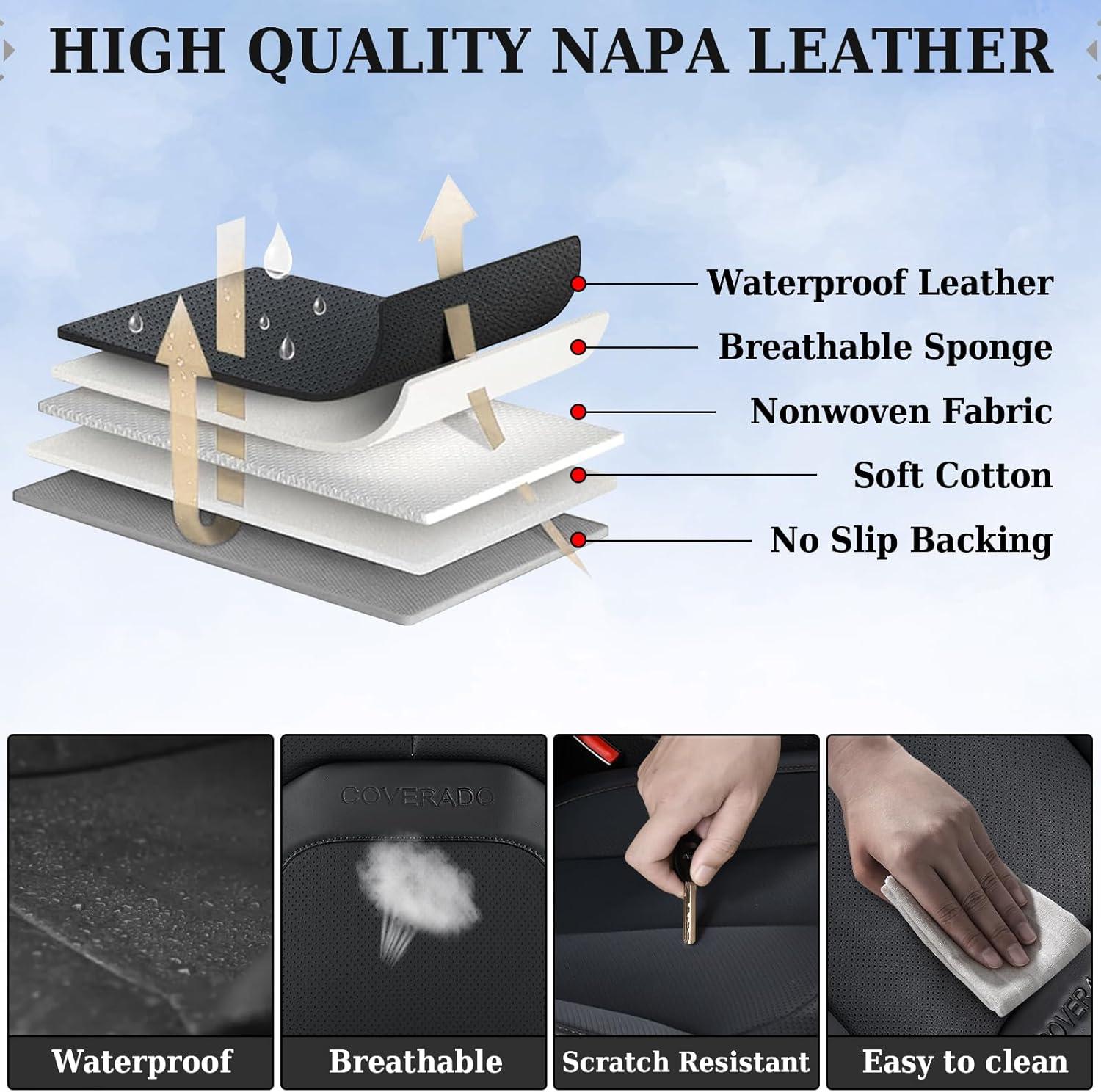 Coverado Leather Seat Covers Full Set for Ford F150, Custom Fit Automotive Seat Covers for 2015-2025 F150 and 2017-2025 F250, F350, F450 (Red)(Black)