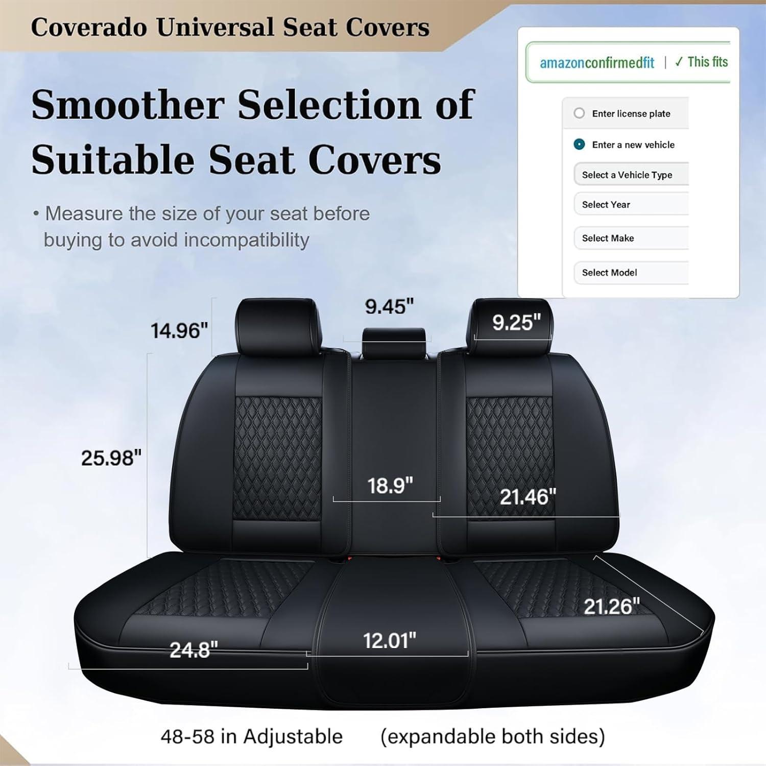– UNIVERSAL FIT: The Coverado rear seat covers are designed to fit over 99% of vehicles without obstructing the original functions like airbags and seatbelts. They are tailored for a perfect fit while ensuring all safety features are retained.