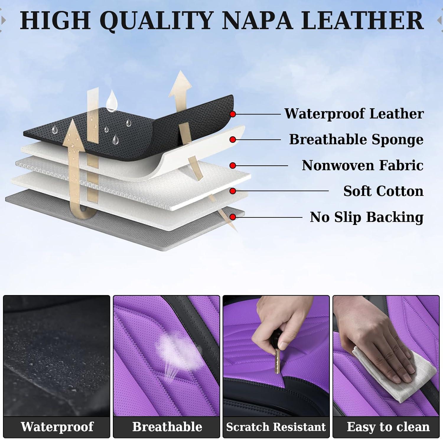 【Preferred Leather】Coverado seat cover is made of perforated Nappa leather and durable faux leather with high resilience density foam padding, breathable and comfortable, which not only enhances the comfort of the seat but also provides better protection