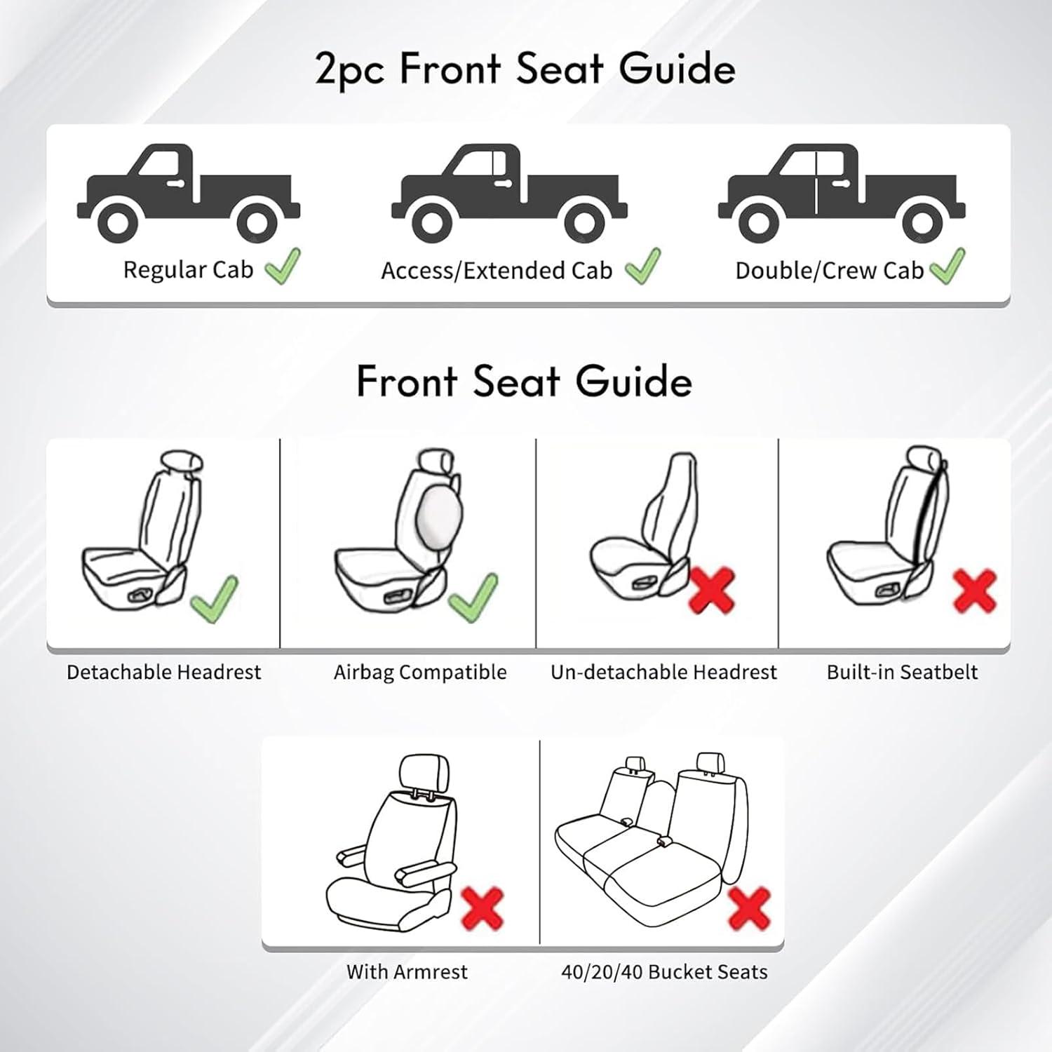 The Package Includes: 2 front seat covers, 1 back seat backrest cover with 60/40 composition, 1 back seat cushion cover with 60/40 composition, and 5 full-coverage headrest covers. Note: The front center armrest cover is not included. For Tacoma owners who wish to keep their vehicle interiors as new, provide comprehensive protection and ensure the safety of passengers, this seat cover is a must-have