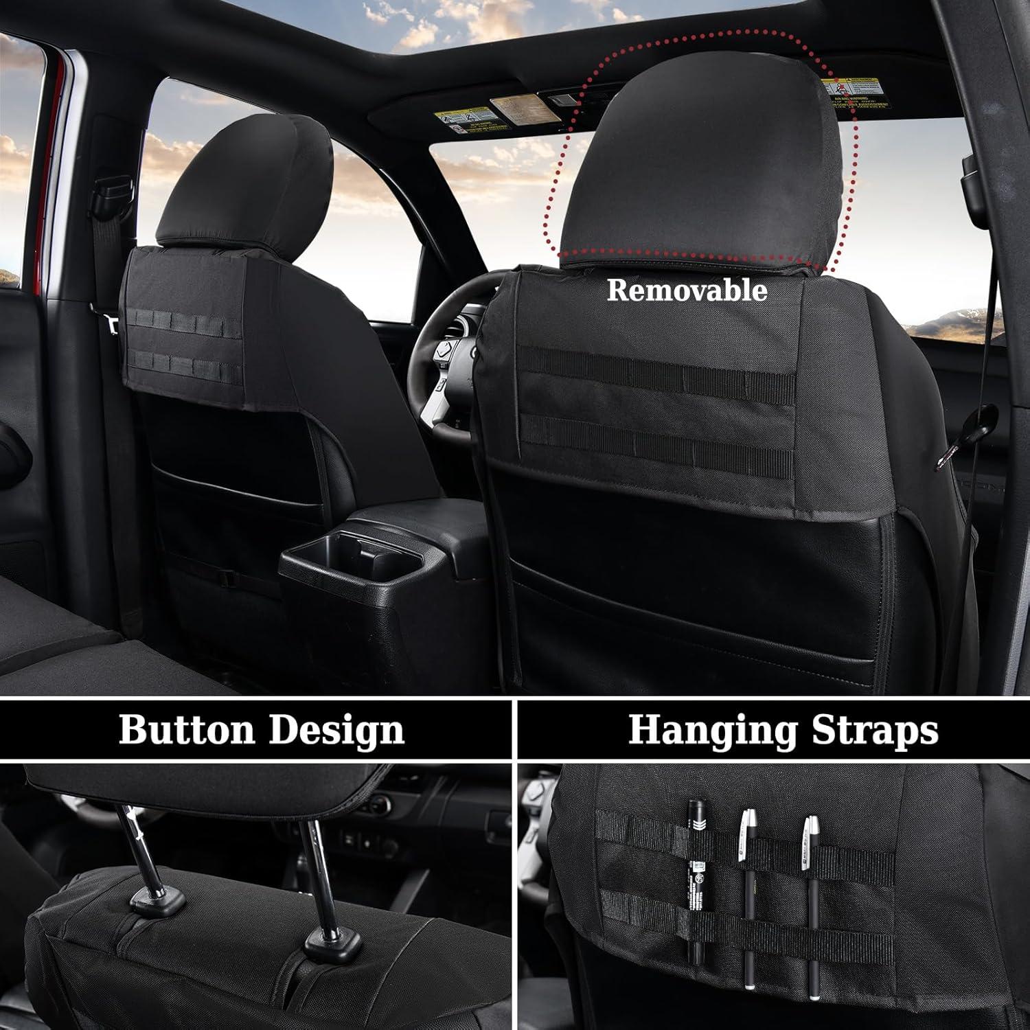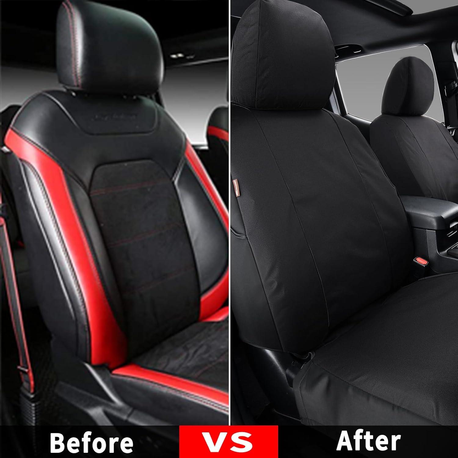 The Package Includes: 2 front seat covers, 1 back seat backrest cover with 60/40 composition, 1 back seat cushion cover with 60/40 composition, and 5 full-coverage headrest covers. Note: The front center armrest cover is not included. For Tacoma owners who wish to keep their vehicle interiors as new, provide comprehensive protection and ensure the safety of passengers, this seat cover is a must-have