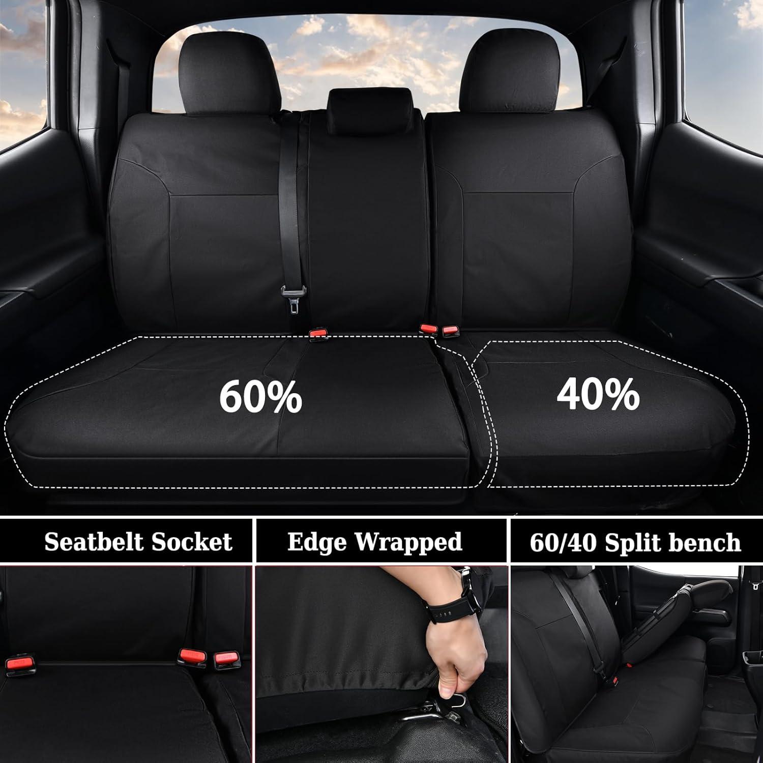Compatibility: Compatible with the Double & Crew Cab 3rd Gen Toyota Tacoma 2016-2023 including SR, SR5, Limited, TRD Pro, TRD Sport, TRD Off-Road, Trail Special Edition. NOT FIT for the 3rd Gen Extended/Access Cab and the 4th Generation Toyota Tacoma. The rear 40/60 split seats can be covered independently. When one side is lifted, the other side remains fixed