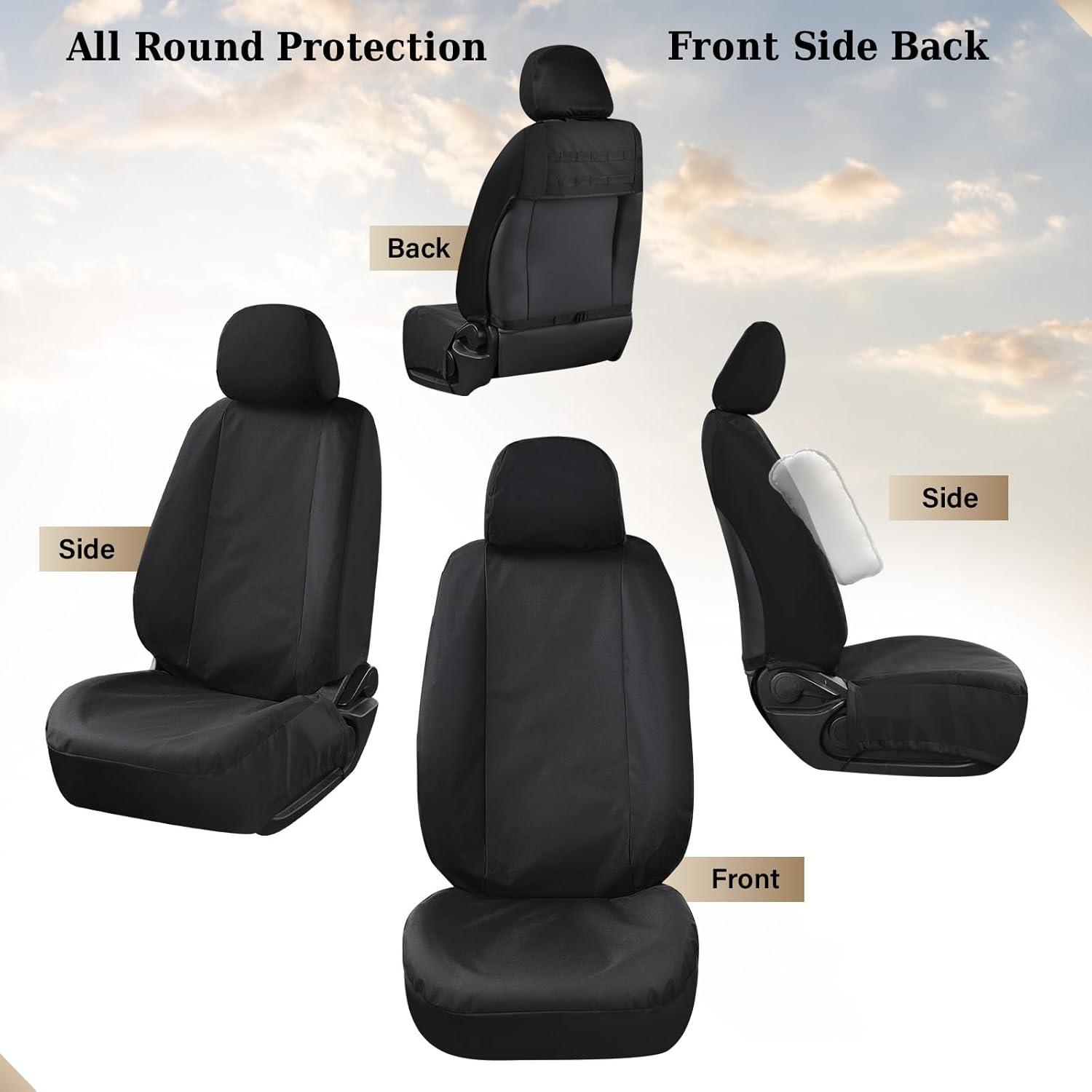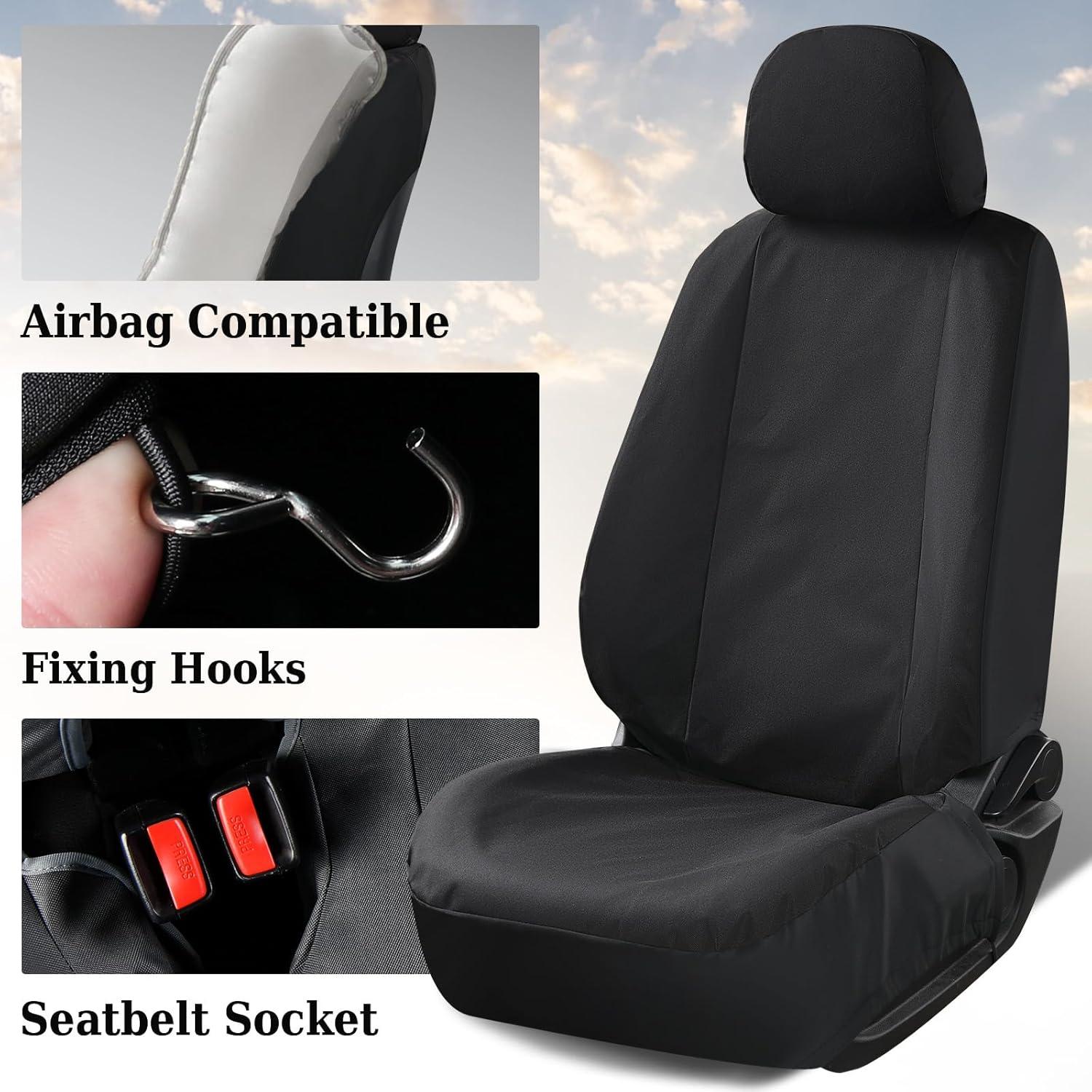 Full Coverage Design: The all-inclusive seat covers are strictly customized according to the original factory seat dimensions, perfectly fitting the seat contours and effectively blocking debris and hair. The front seats are equipped with concealed safety airbag openings. The rear seats are compatible with seat belts and armrests. The independent headrest covers are designed for easy adjustment of the headrest to achieve the best comfort and safety
