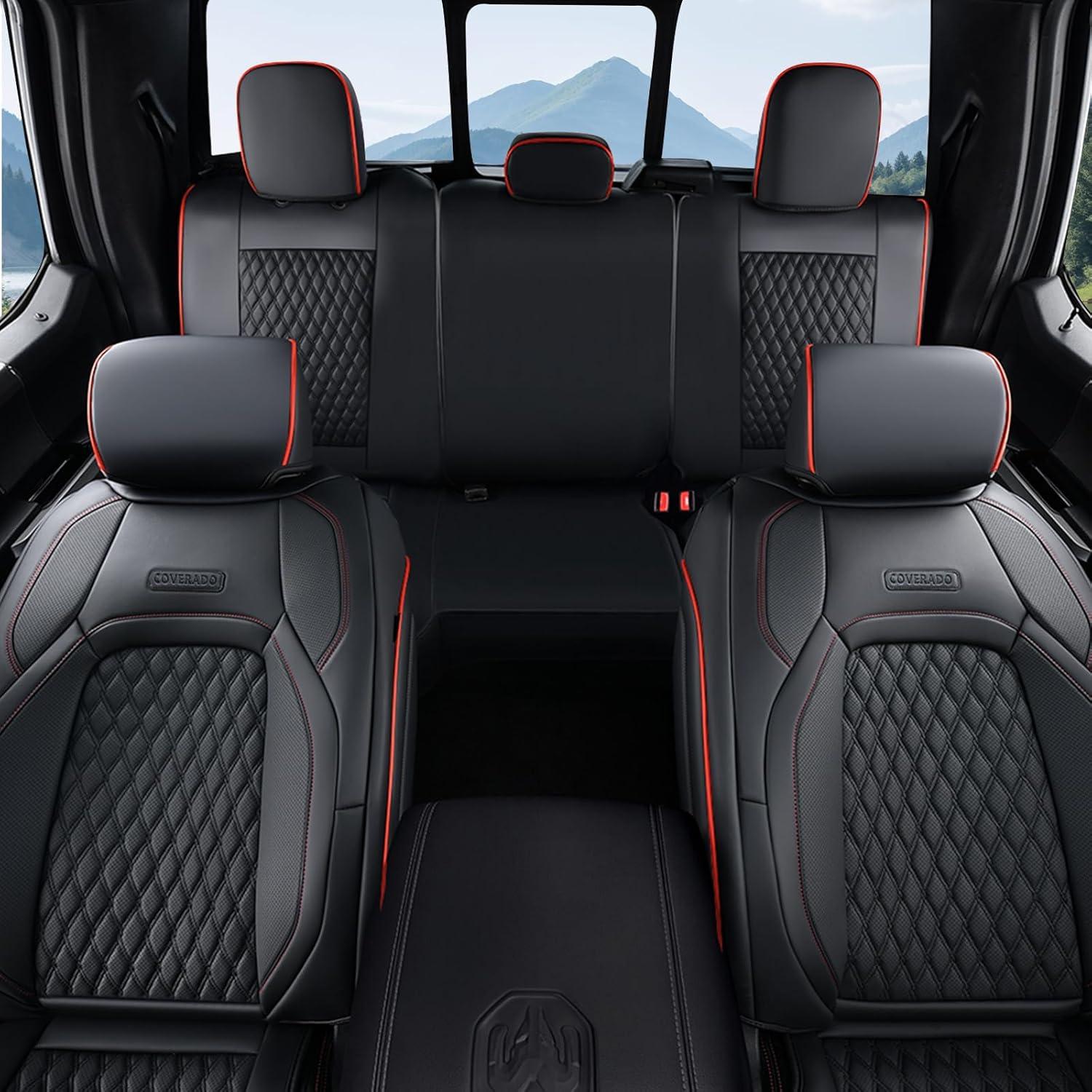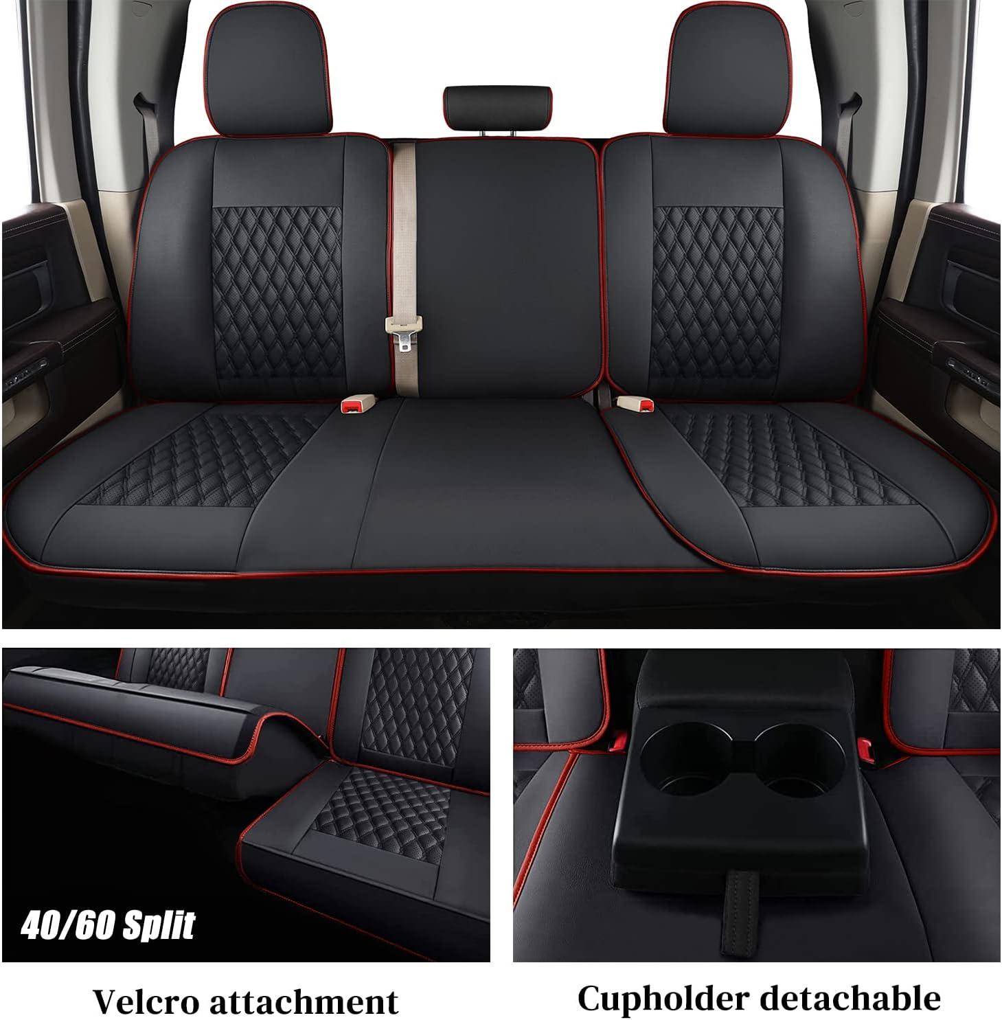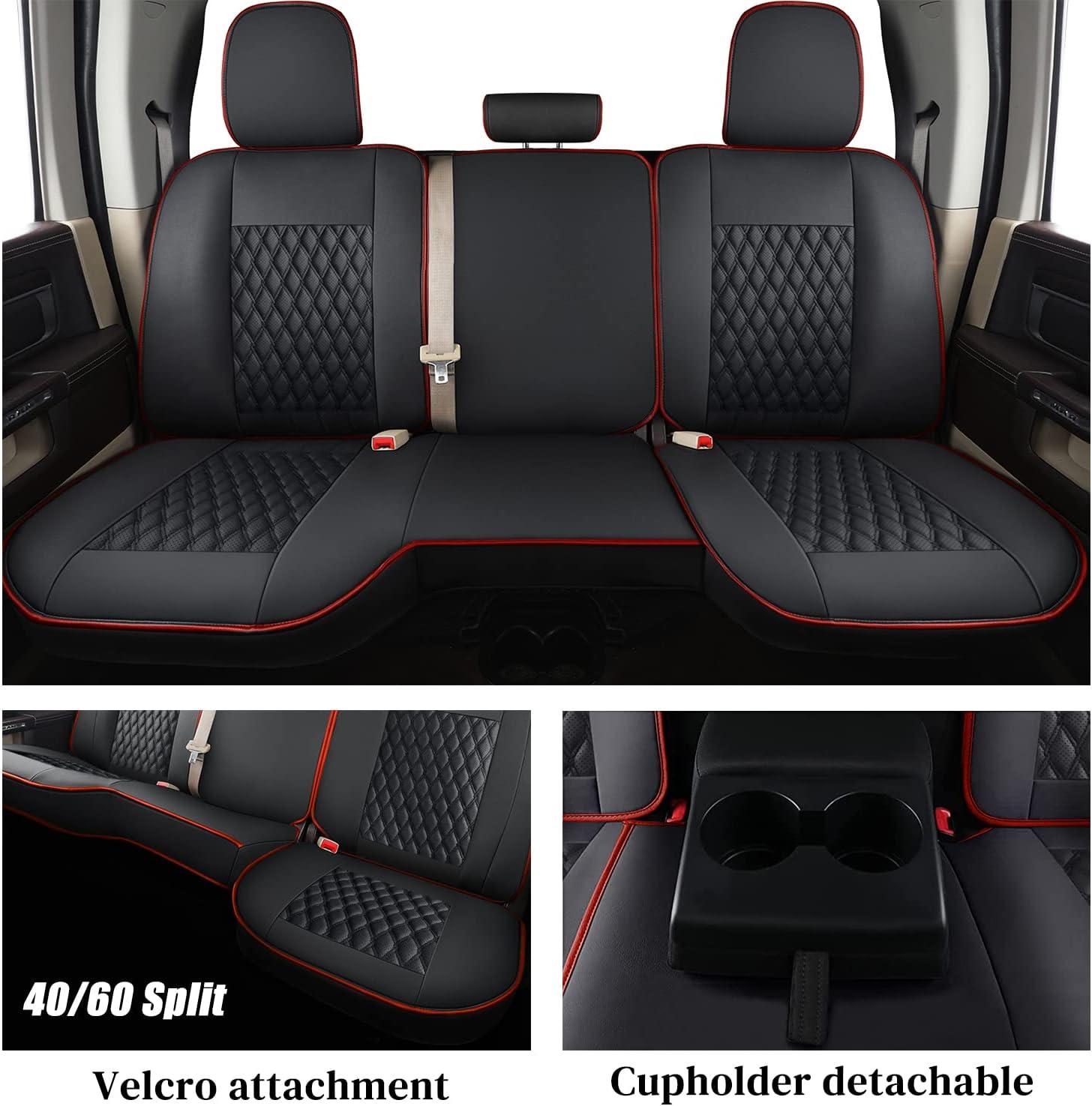 imageCoverado Seat Covers for Dodge Ram 1500 Full Coverage Leather Car Seat Covers Waterproof Fit for 20102023 2500 3500 Dodge RAM Automotive Seat Covers Protector for Trucks Ram Red lineRed