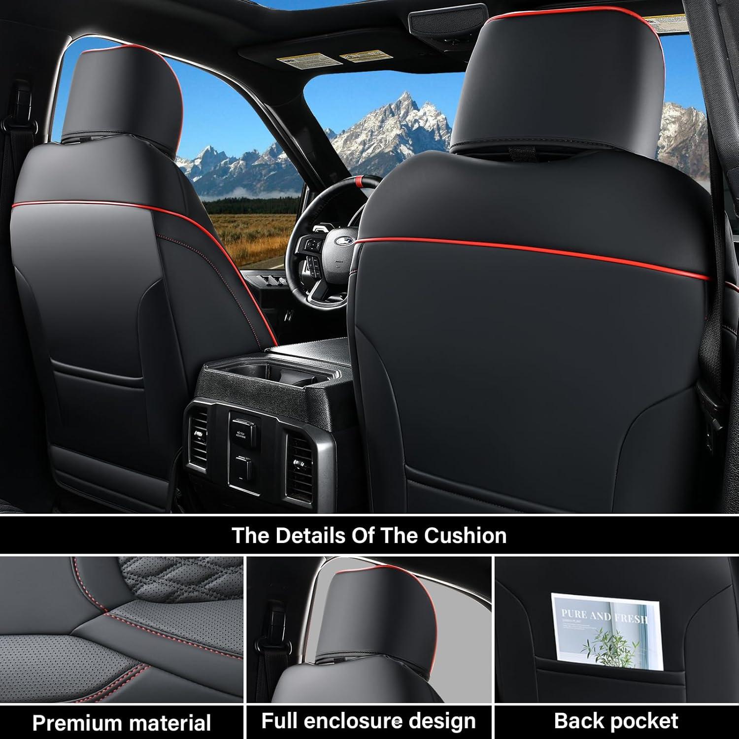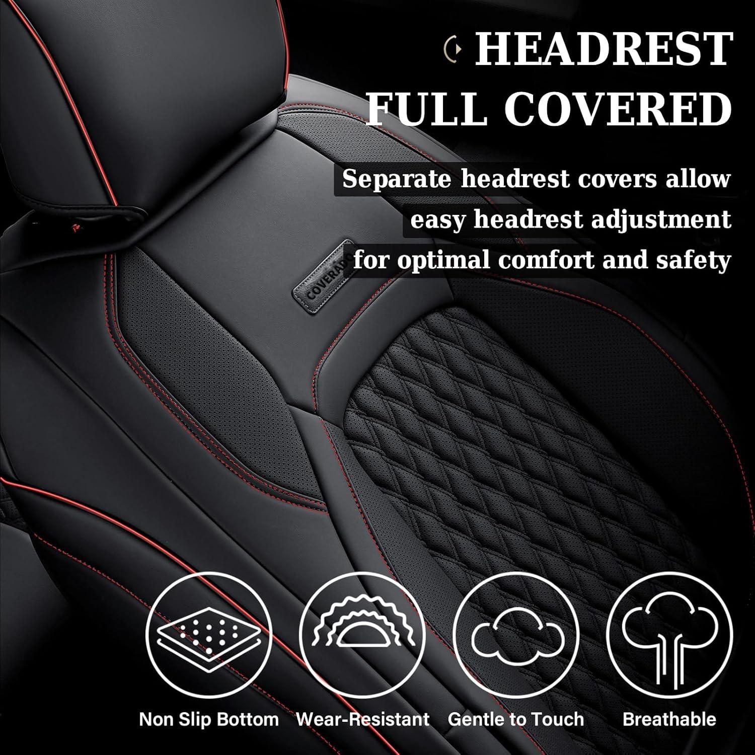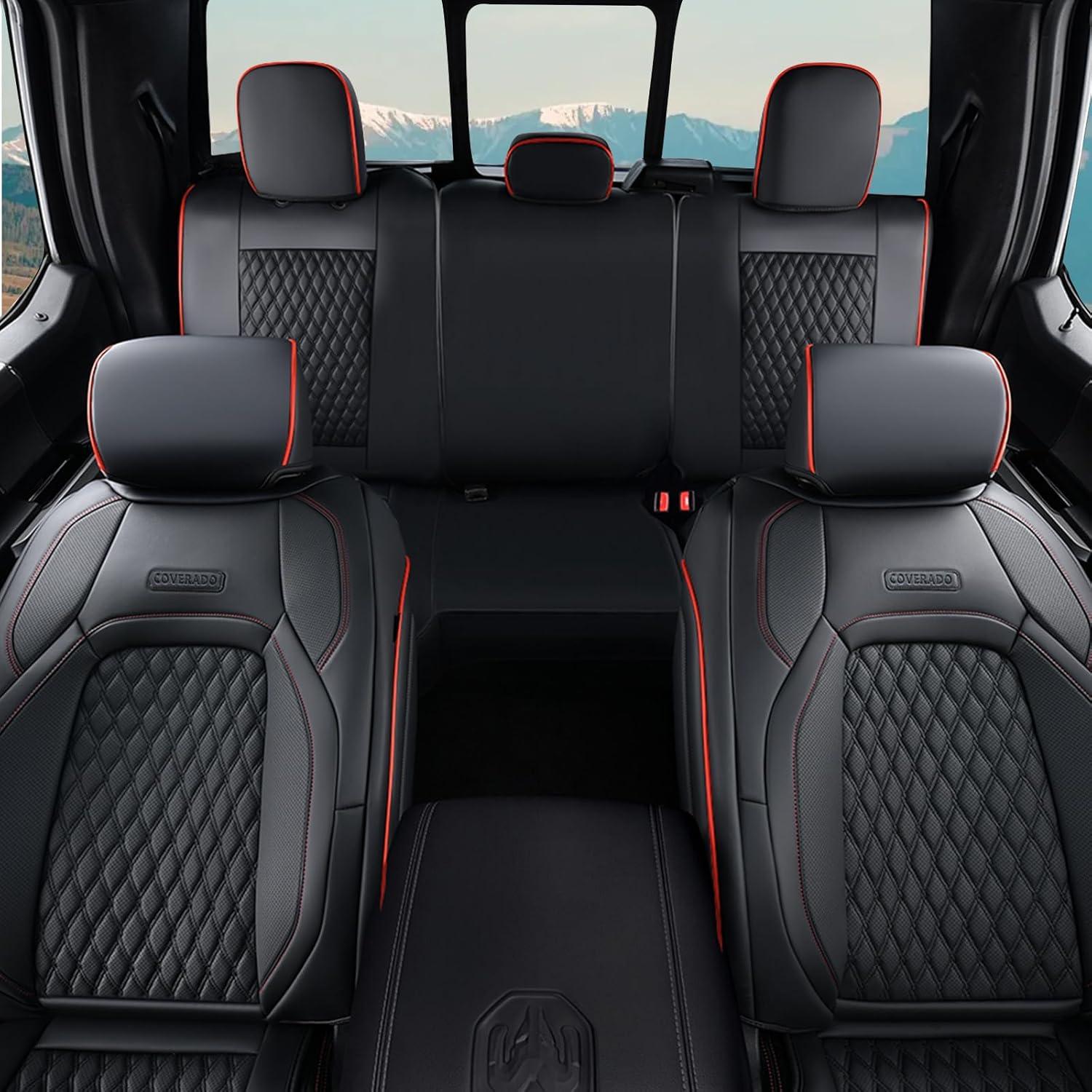 imageCoverado Seat Covers for Dodge Ram 1500 Full Coverage Leather Car Seat Covers Waterproof Fit for 20102023 2500 3500 Dodge RAM Automotive Seat Covers Protector for Trucks Ram Red lineRed