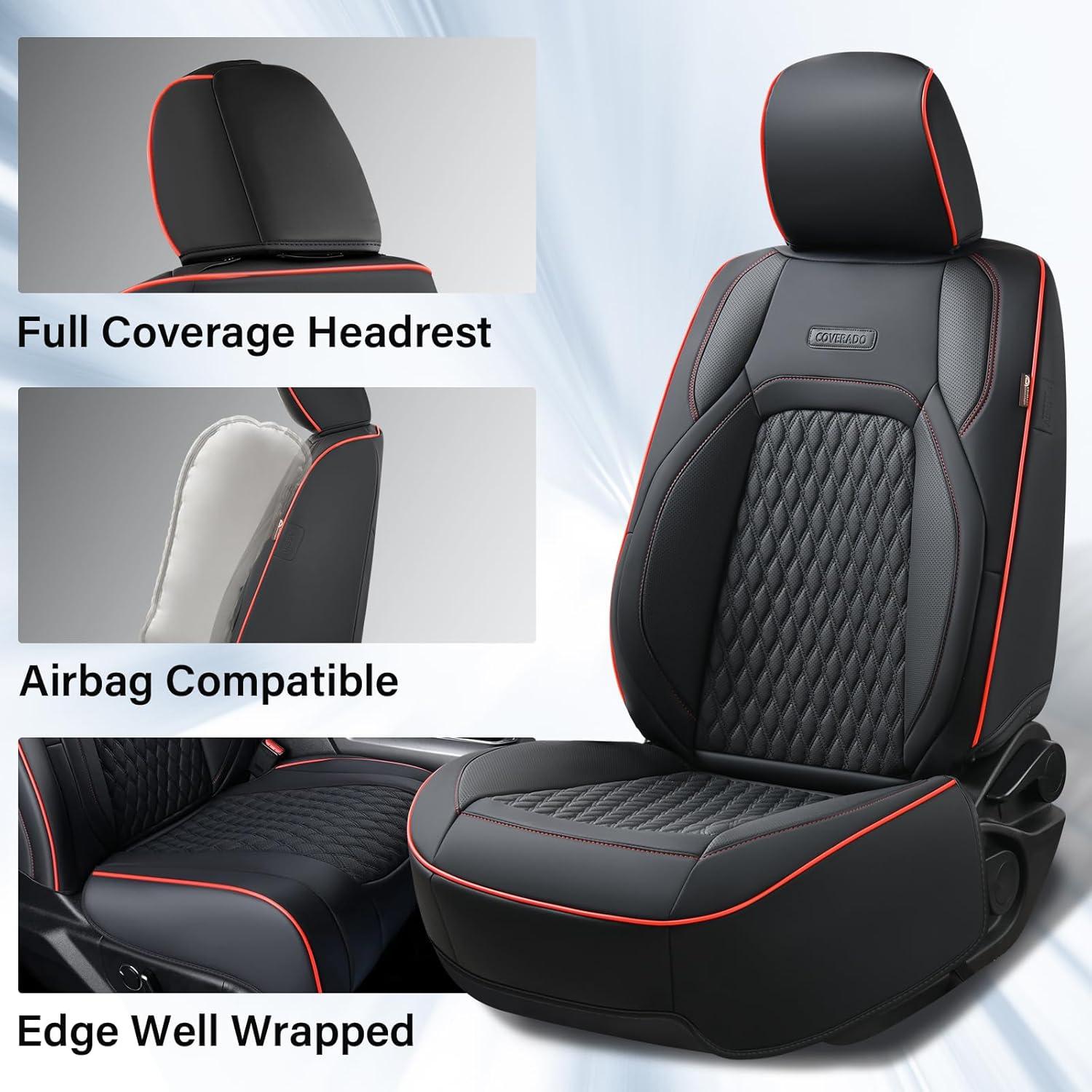 Coverado Seat Covers for Dodge Ram 1500, Full Coverage Leather Car Seat Covers Waterproof Fit for 2010-2023 2500 3500 Dodge RAM Automotive Seat Covers Protector for Trucks Ram, Red line(Red)