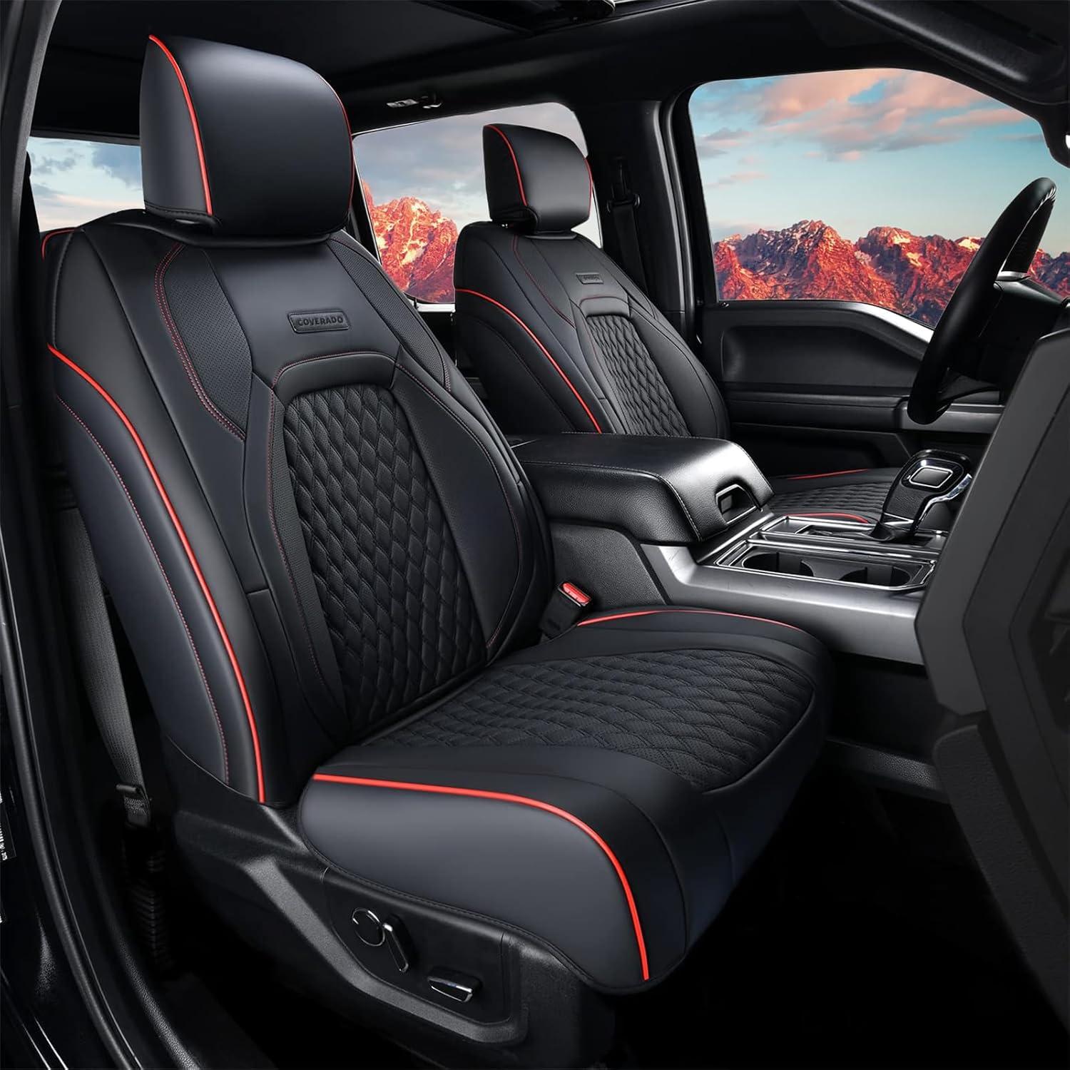 Coverado Seat Covers for Dodge Ram 1500, Full Coverage Leather Car Seat Covers Waterproof Fit for 2010-2023 2500 3500 Dodge RAM Automotive Seat Covers Protector for Trucks Ram, Red line(Red line)