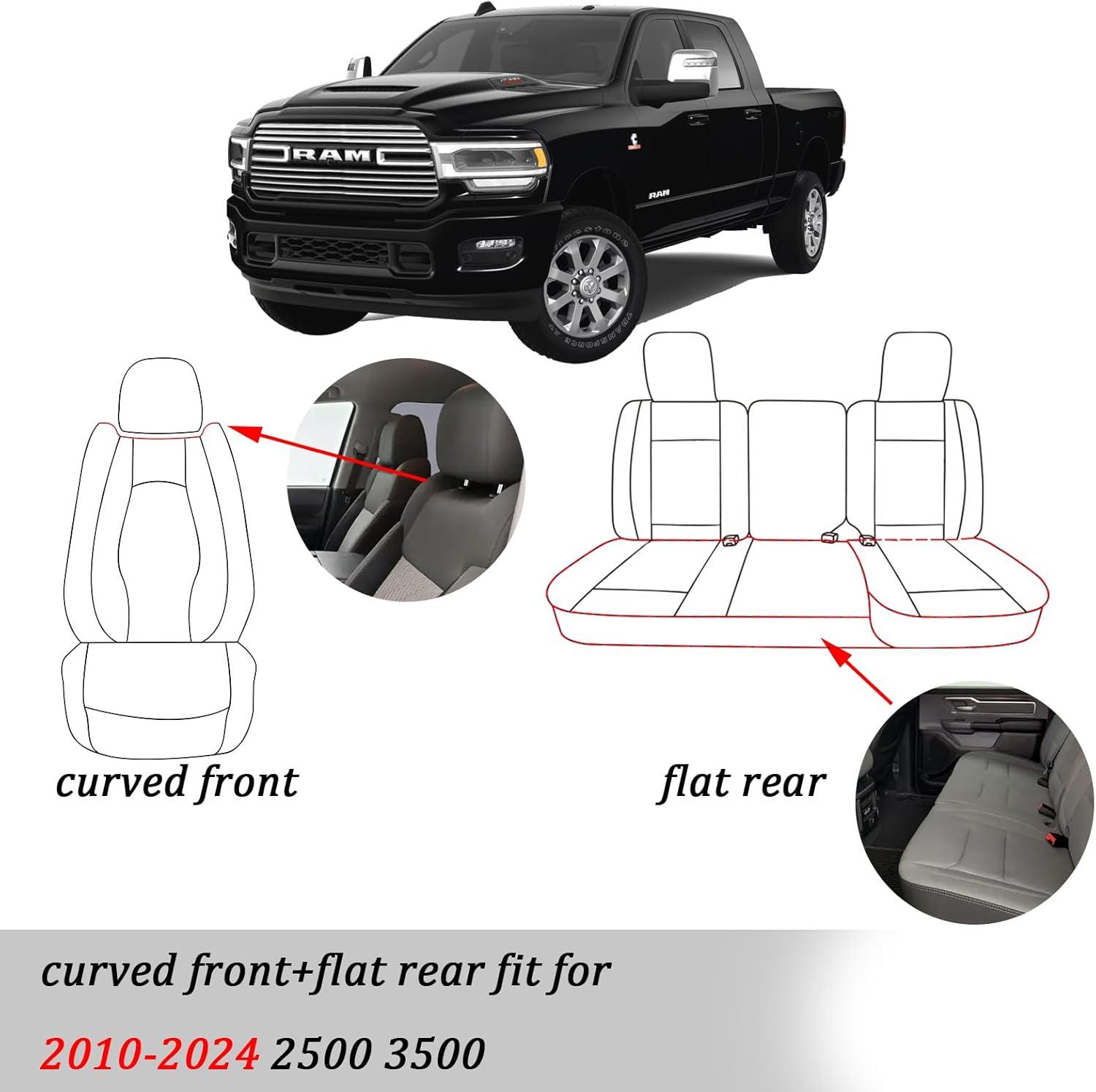 ADAPTATION: Truck seat covers for dodge ram 1500 specifically designed for Dodge RAM trucks, car seat covers full set provide a perfect fit for 2010-2023 Ram 2500 3500. Note: Customized fit for curved front seats & flat rear only (not suitable for solid seats)