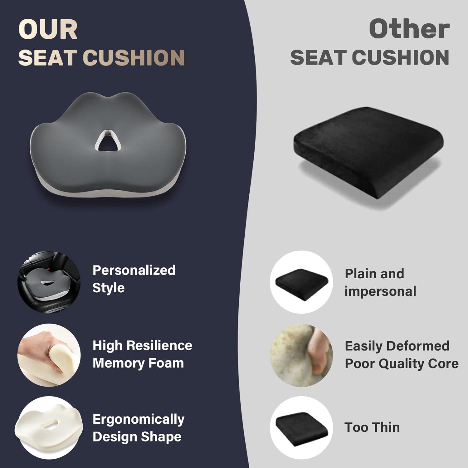 Coverado Seat Cushion and Lumbar Support Pillow One Piece for Car Office Chair, Ergonomic Memory Foam Desk Chair Cushion Back Support Pillow, Sciatica & Back & Tailbone Pain Relief Cushion-Gray(Seat Cushion-gray)