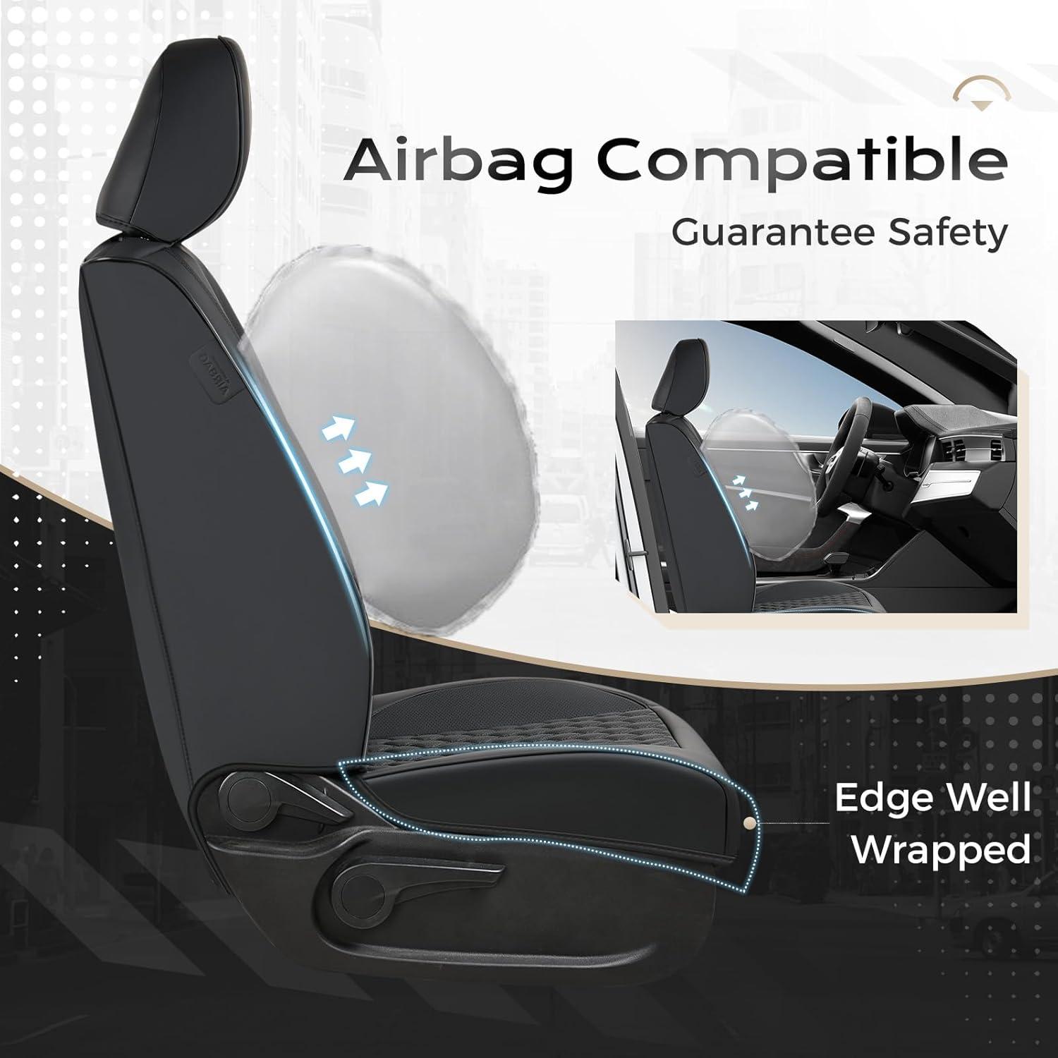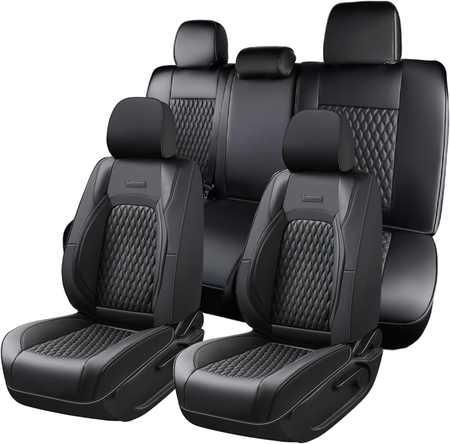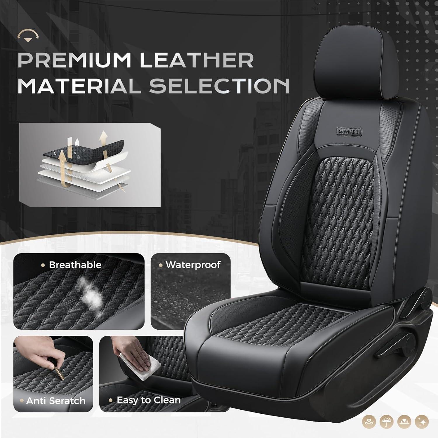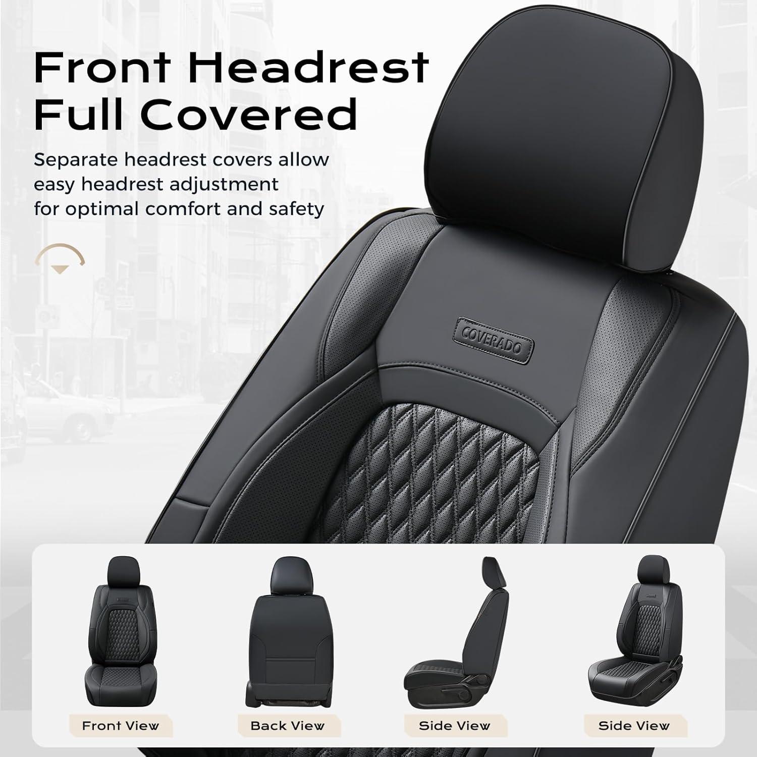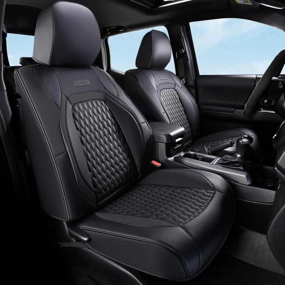 Coverado Tacoma Front Seat Covers, Faux Leather Custom Fit for 2005-2015 Toyota Tacoma Double/Crew Cab Base, PreRunner, SR5, Limited, TRD Sport, Front Seat Protection (Black)(Black)