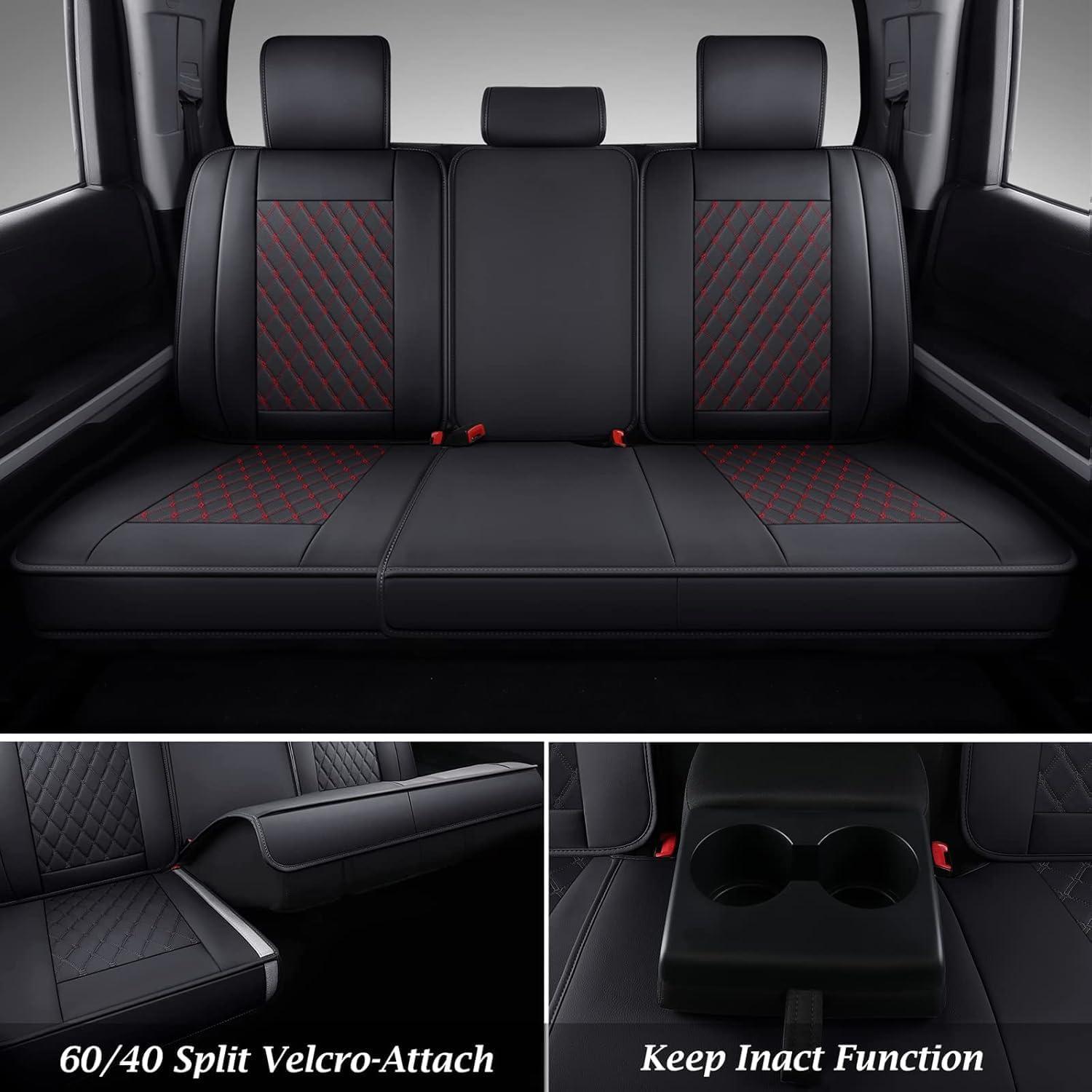 Coverado Tundra Seat Covers, Back Leather Car Seat Covers for Trucks, Automotive Seat Covers Protector Custom Fit 2007-2021 Toyota Tundra(Rear Seat Cover/Blue)(Red)