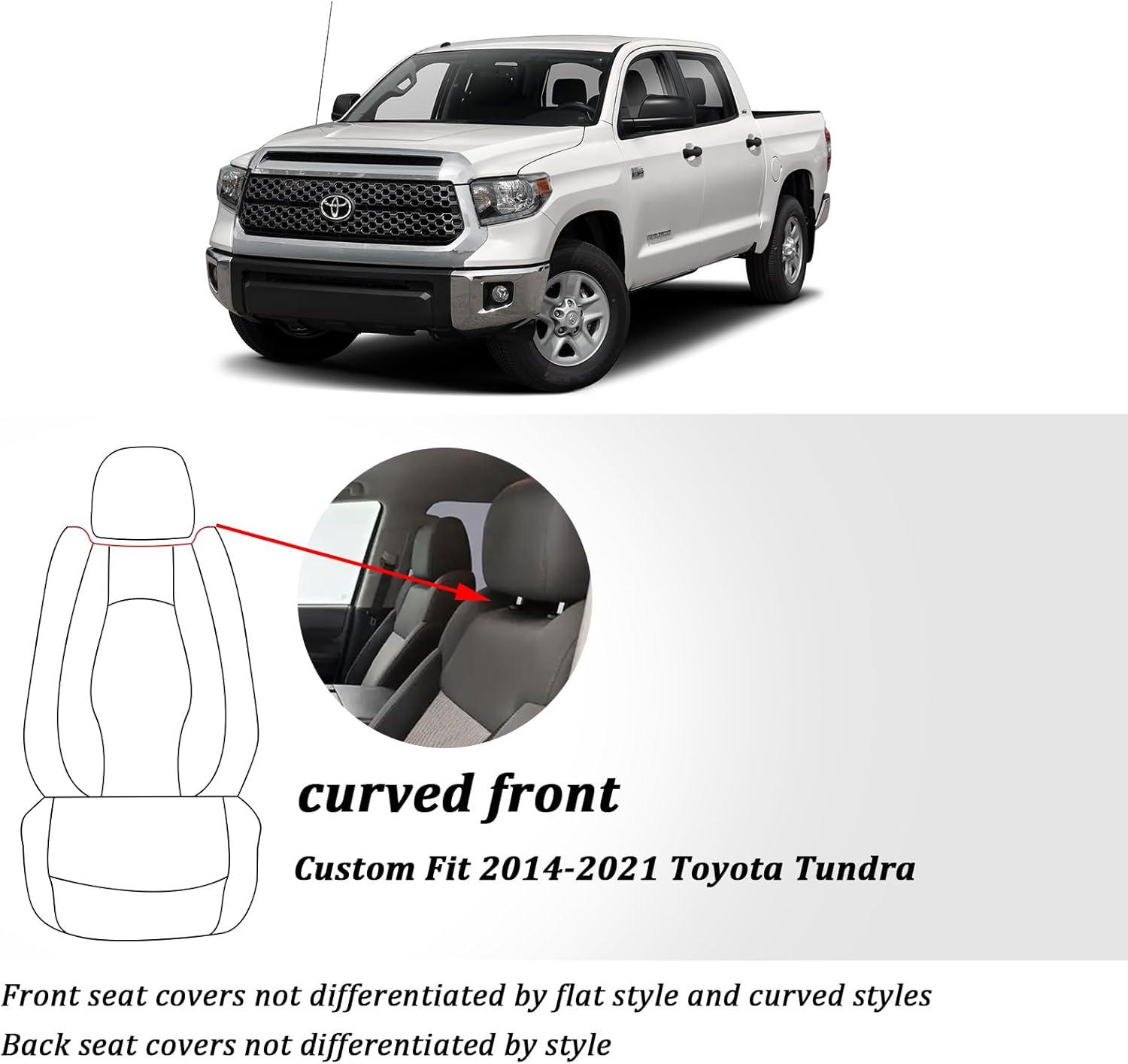 Package: Package includes front seat covers, installation accessories, installation manual. Seat cover fits 2014-2021 Toyota Tundra seat covers