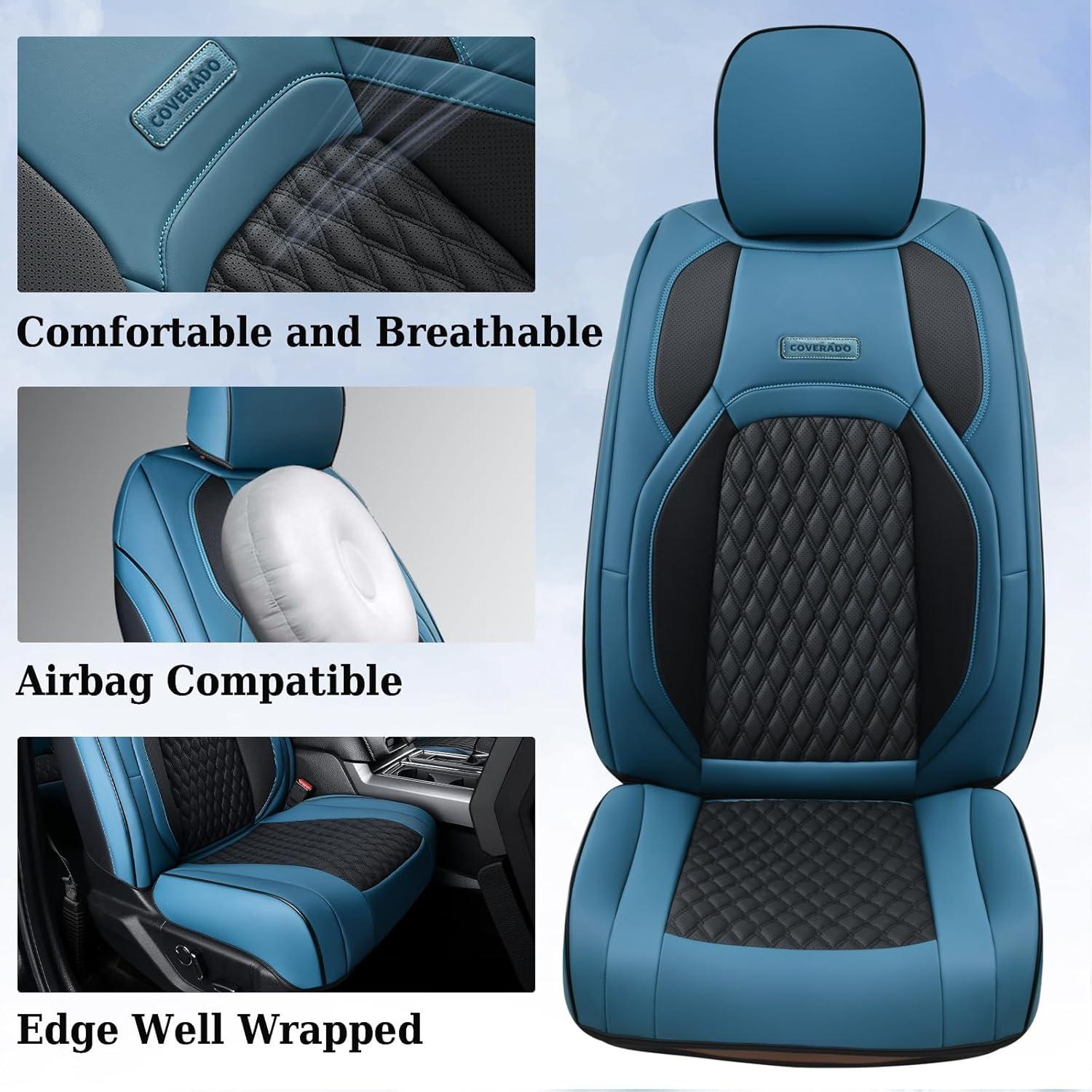 Full Coverage Design: The front seat covers feature a full-coverage design to ensure that every position is protected and will fit your car seat better, making it look like a native seat. The simple and luxurious design of leather seat cover will add a touch of sophistication to your car's interior and enhance the overall look of your car