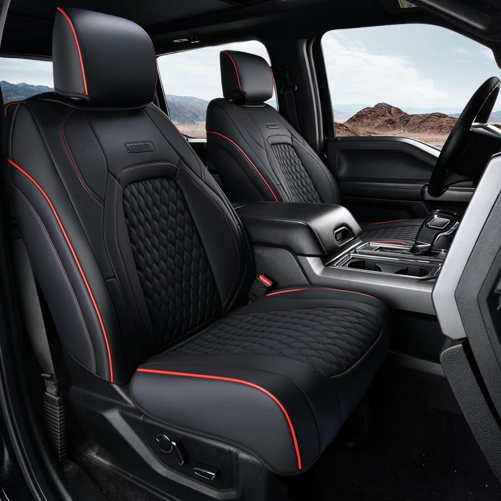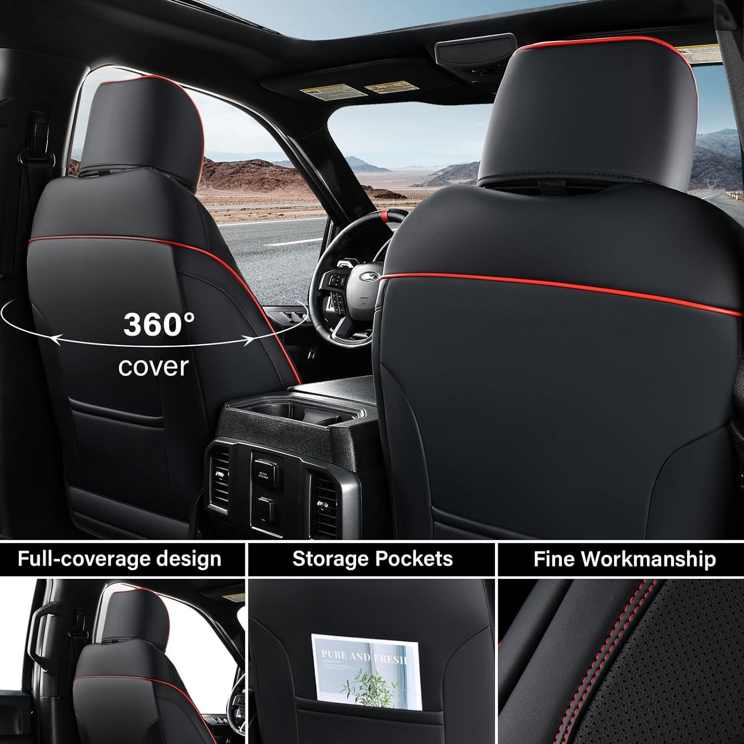 Coverado Tundra Seat Covers, Front Car Seat Covers Fit for Toyota Tundra 2014-2021 Faux Leather Seat Cover Protector for Truck Automotive Seat Covers Car Interior Accessories(Black&Red)(Red Line)