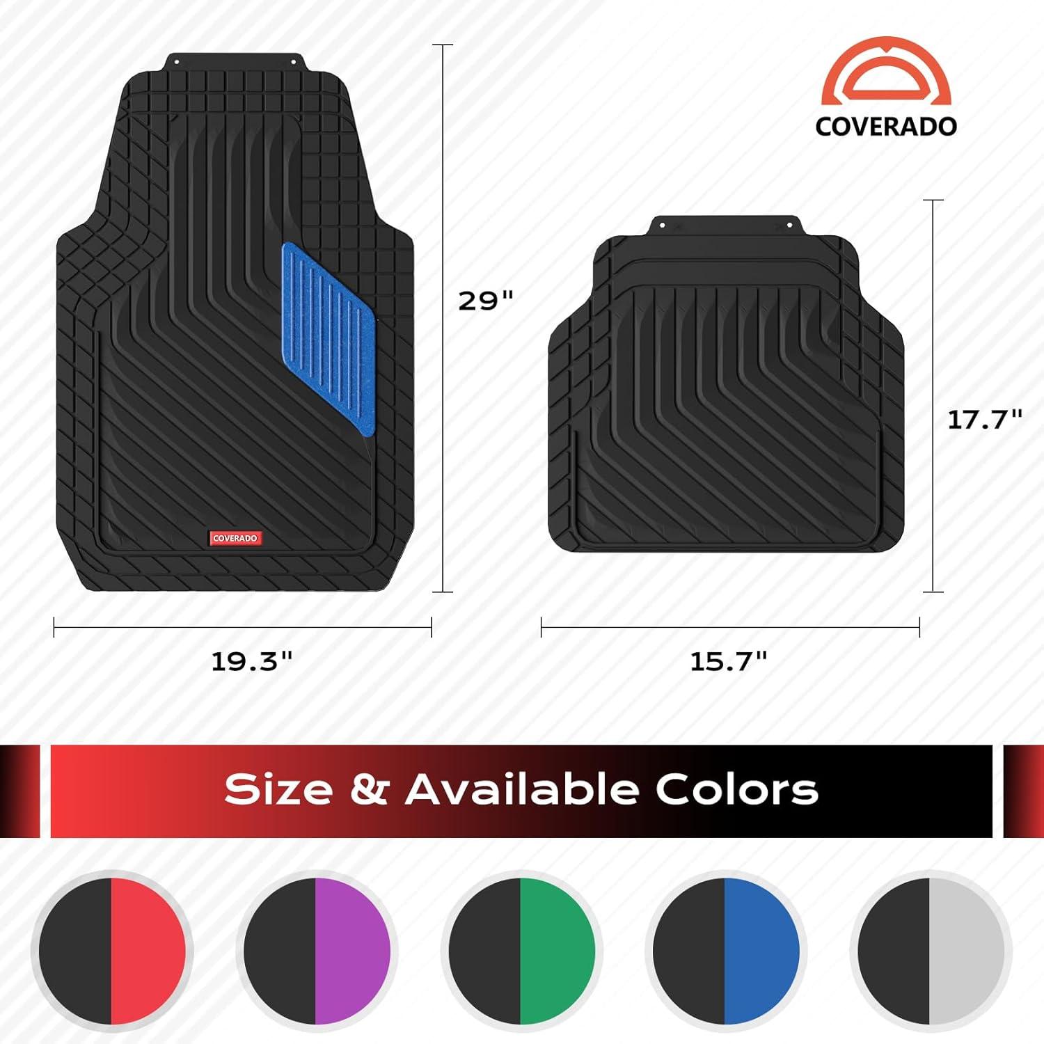 Coverado Universal Car Floor Mats – All-Weather, Waterproof, Non-Slip – Easy to Clean Rubber/TPE Mats for Cars & SUVs(Blue)
