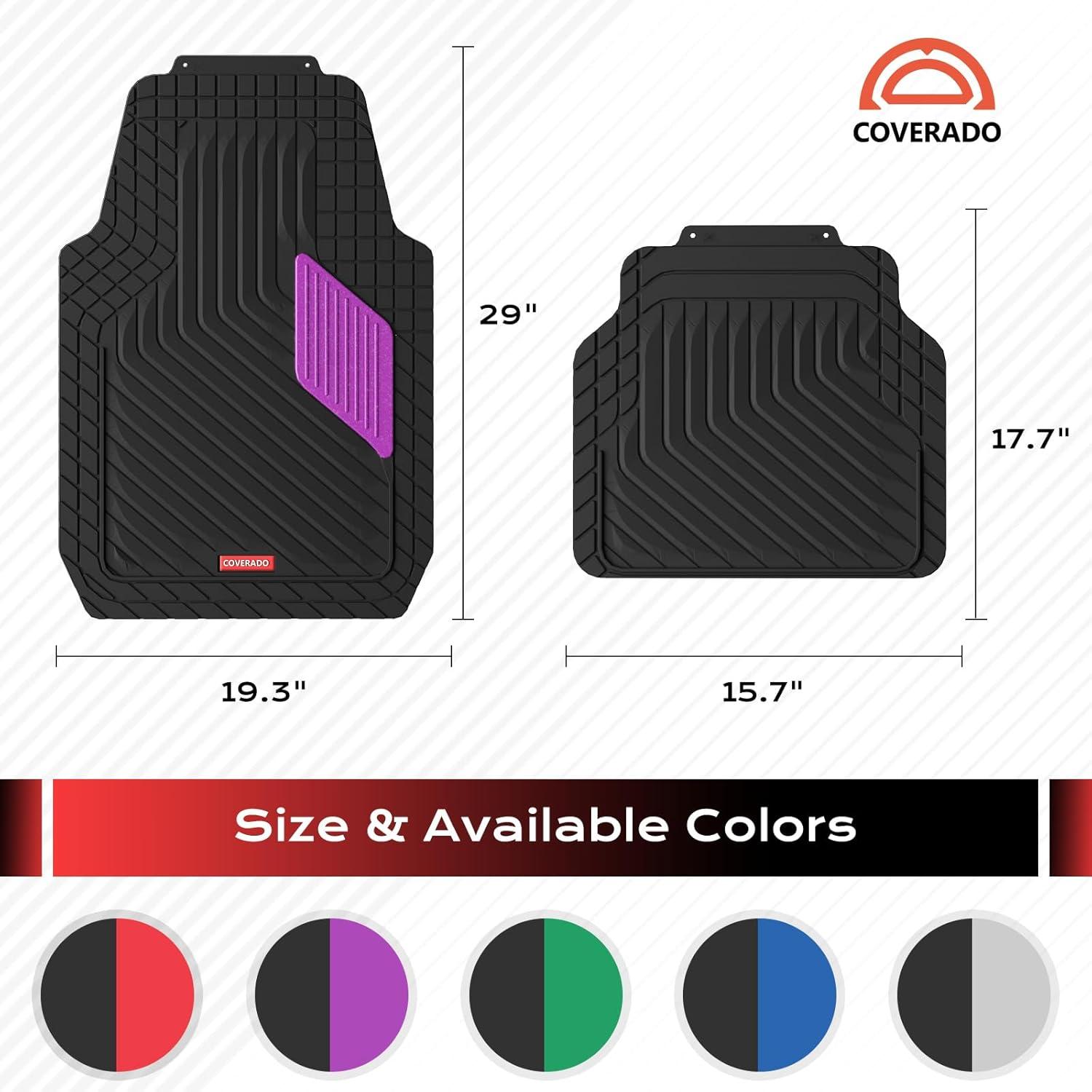 Coverado Universal Car Floor Mats – All-Weather, Waterproof, Non-Slip – Easy to Clean Rubber/TPE Mats for Cars & SUVs(Purple)