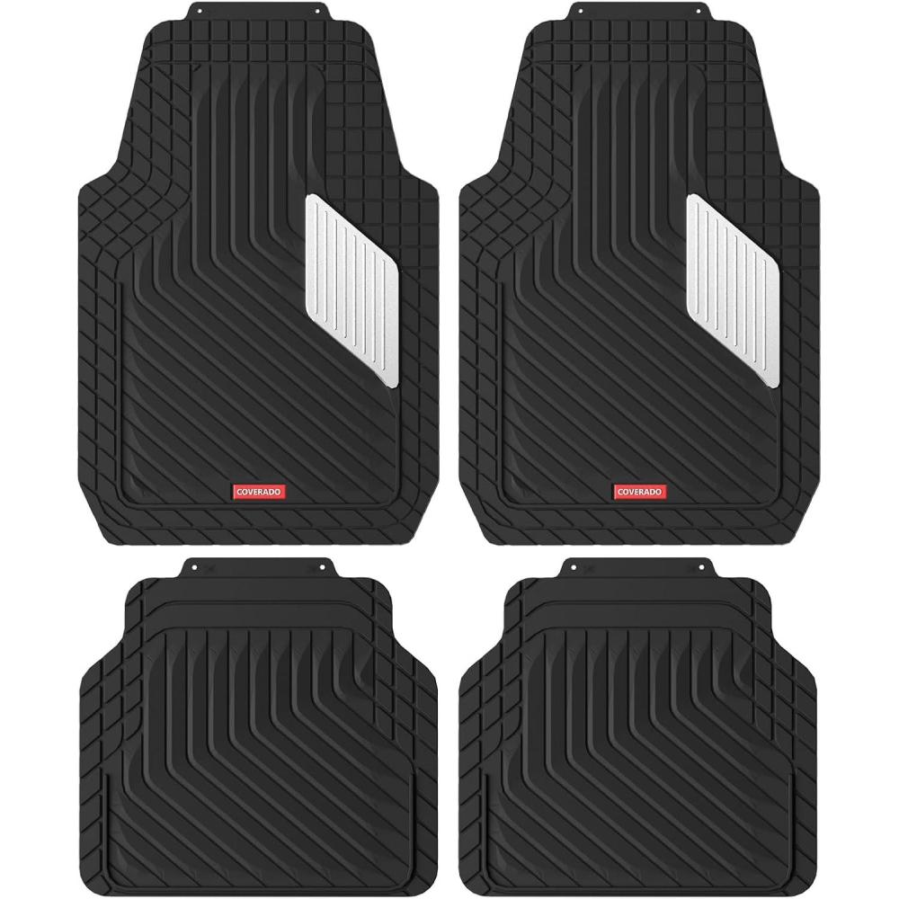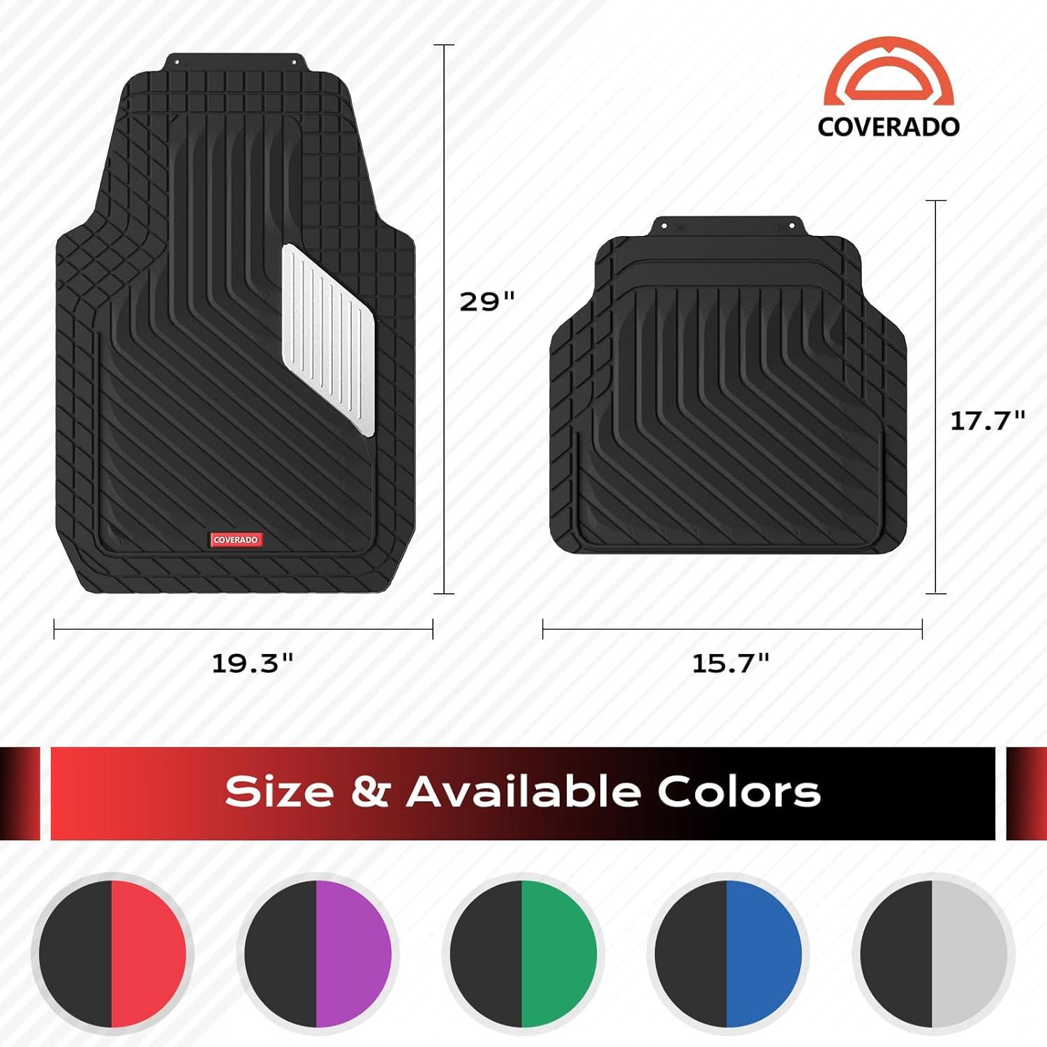 Coverado Universal Car Floor Mats – All-Weather, Waterproof, Non-Slip – Easy to Clean Rubber/TPE Mats for Cars & SUVs(Silver)